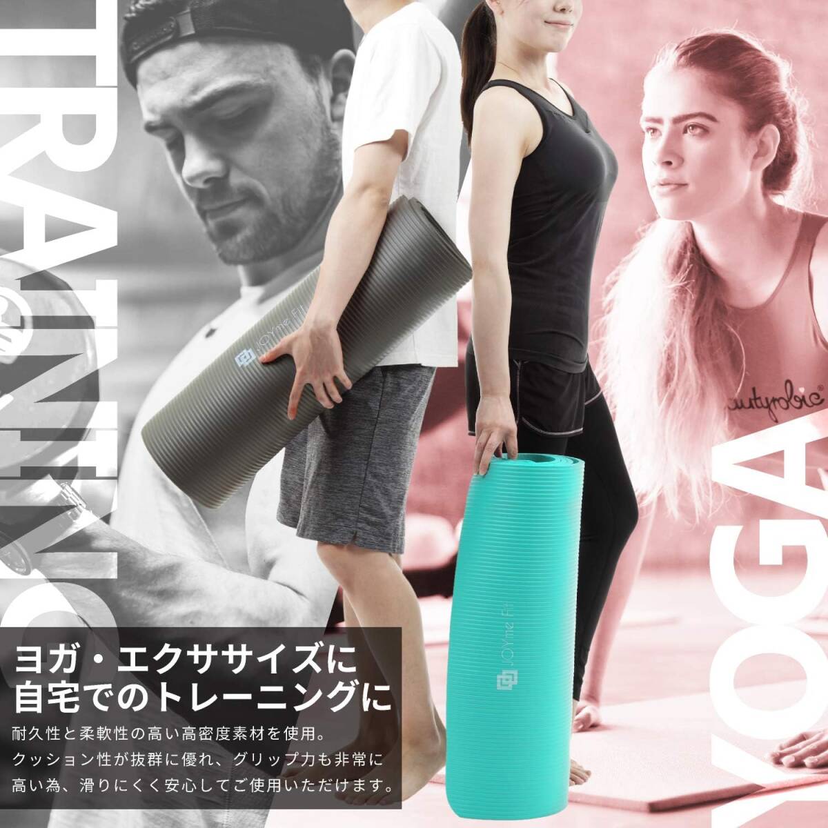 ダークシアン色 ふかふか15mm 厚いクッション JOYme ヨガマット 収納袋付き 高密度ニトリルゴム ヨガ