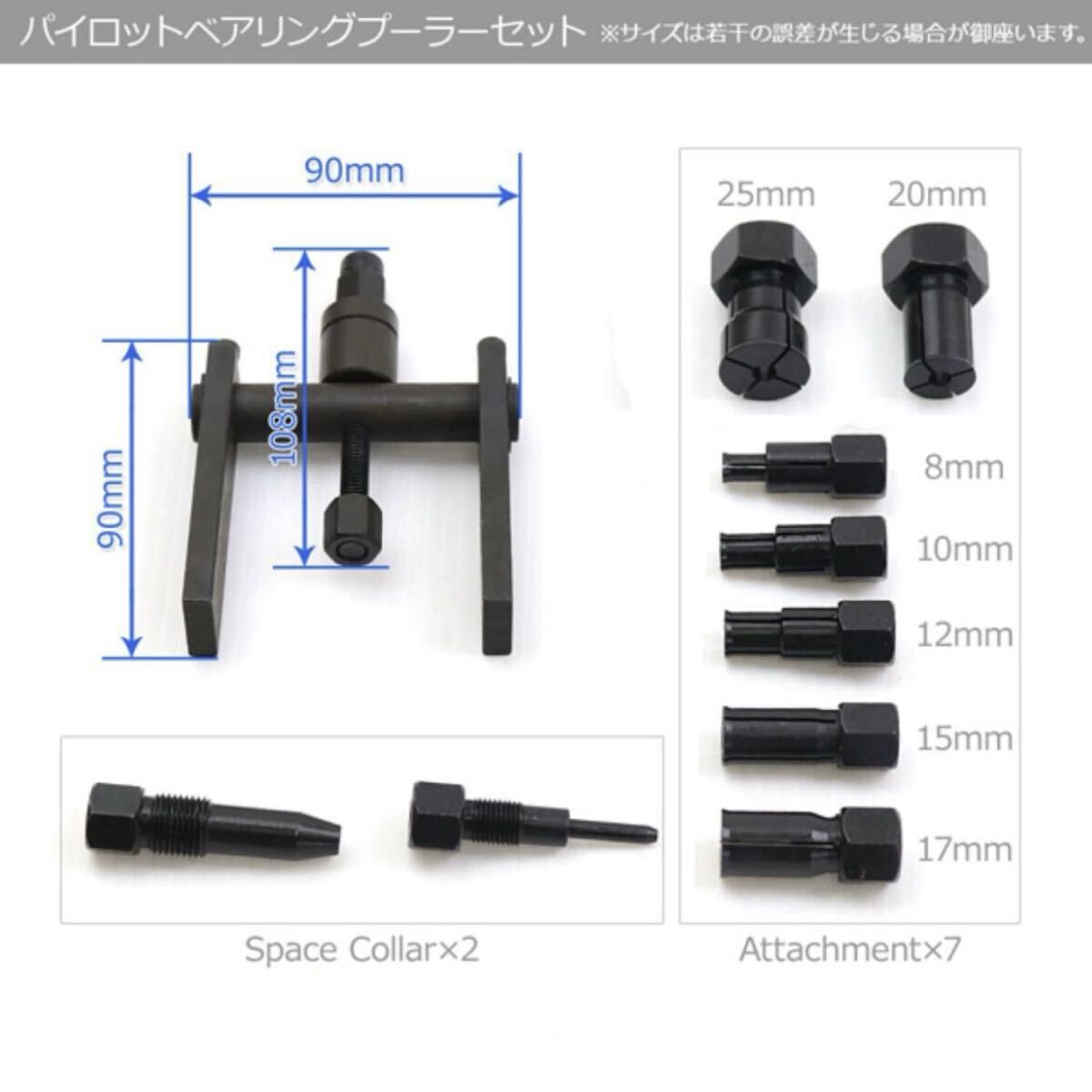 ●(8〜29mm)内掛け対応で穴に入ったベアリングが容易に外せるベアリング交換キットです。