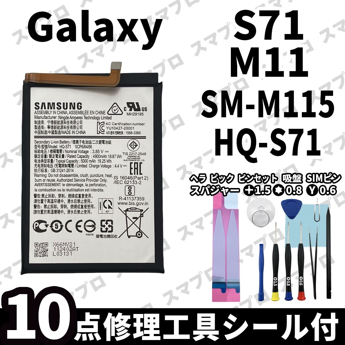 Galaxy S71, M11 SM-M115 バッテリー HQ-S71 専用 ・バッテリー本体 ・両面テープ ・修理交換用工具キット ※商品画像はイメージとなります。 |