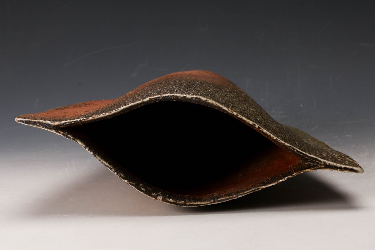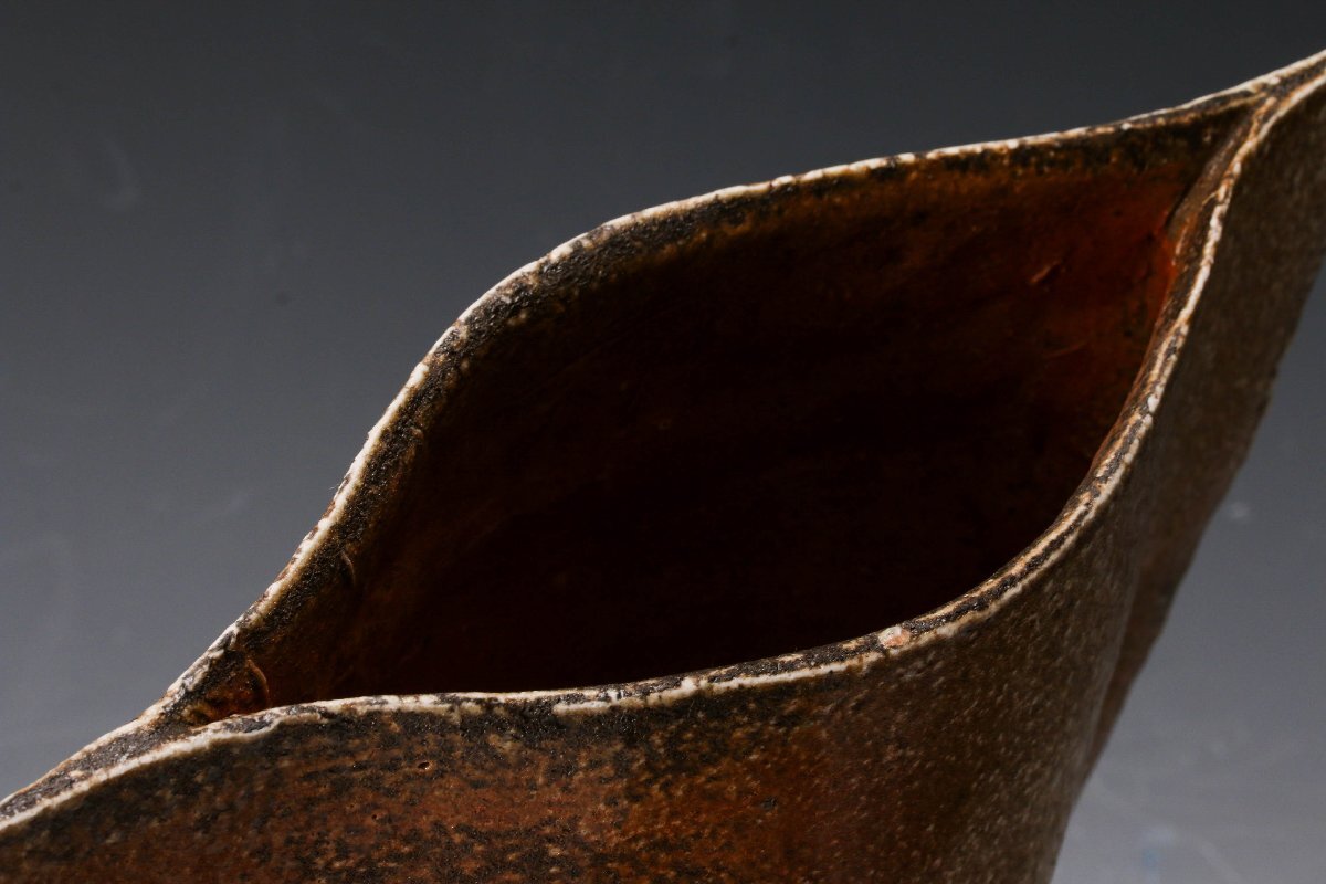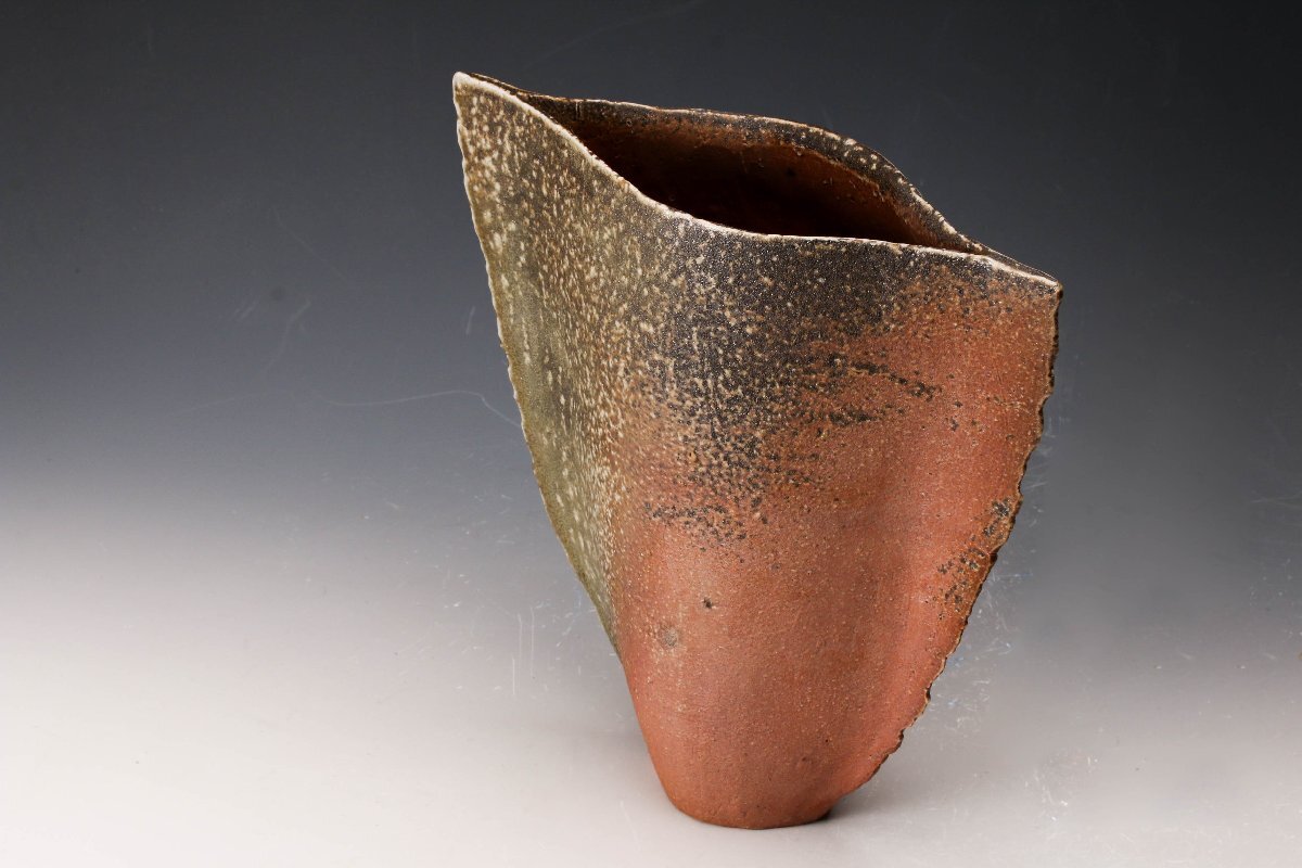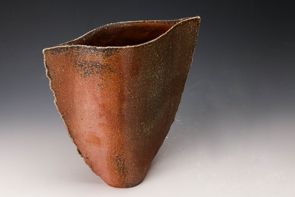 【佳香】松尾無蔵 高さ25cm 焼締窯変花器 共箱 栞 本物保証