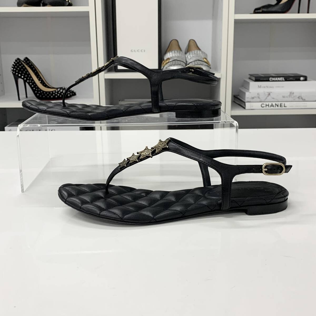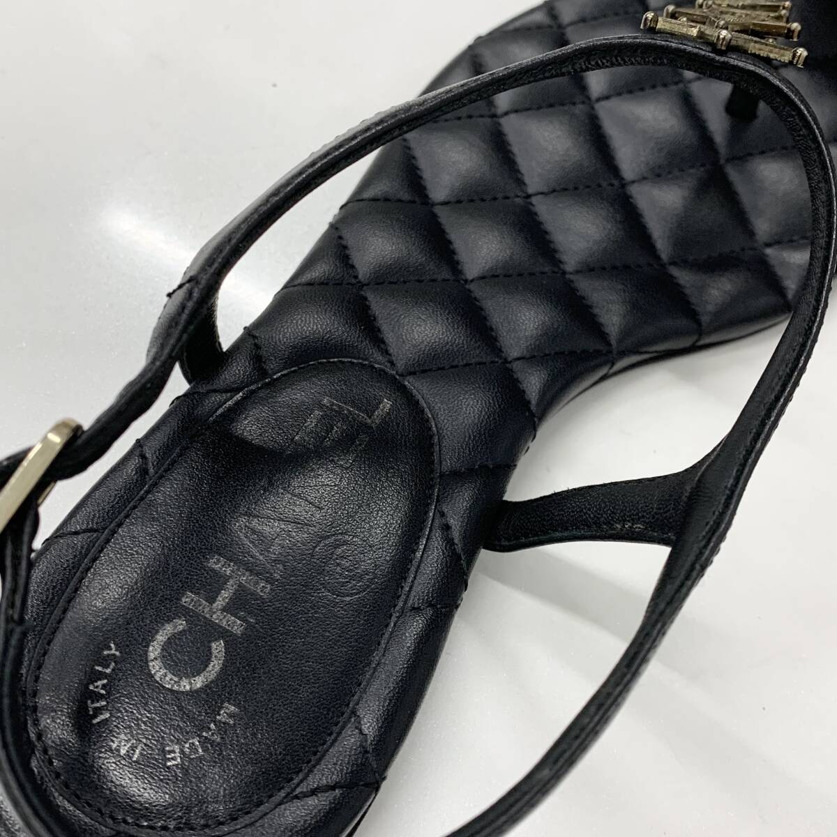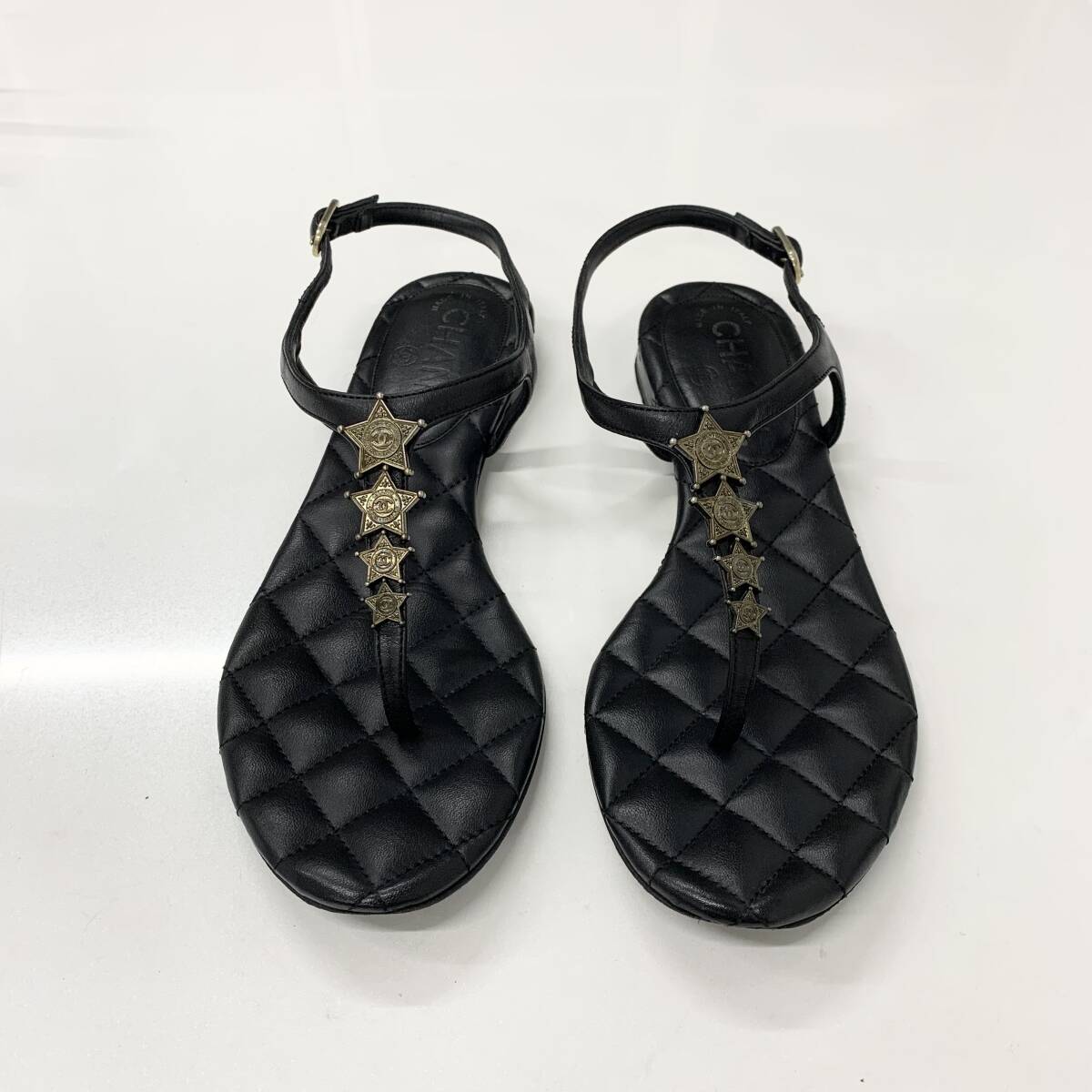 シャネル ココマーク スター マトラッセ レザー トングサンダル ブラック