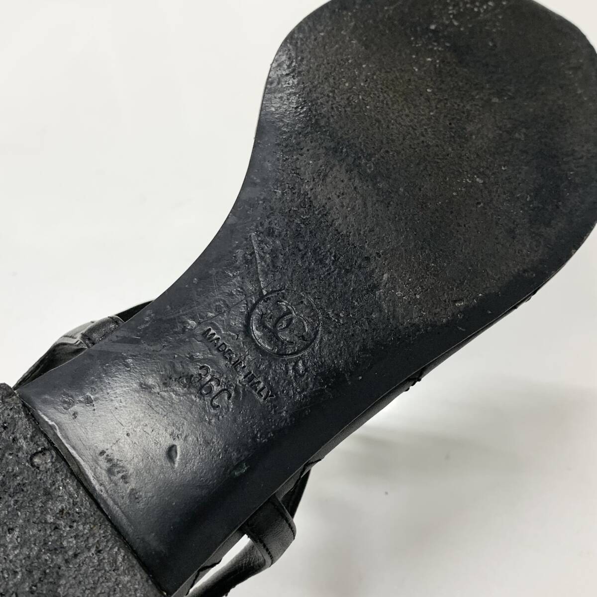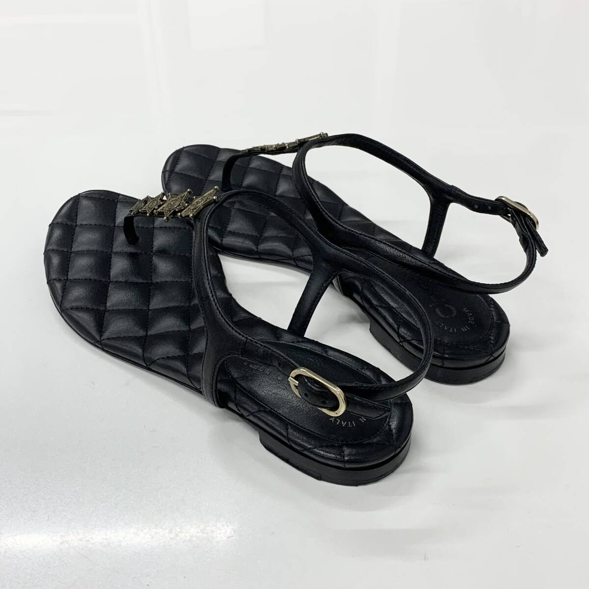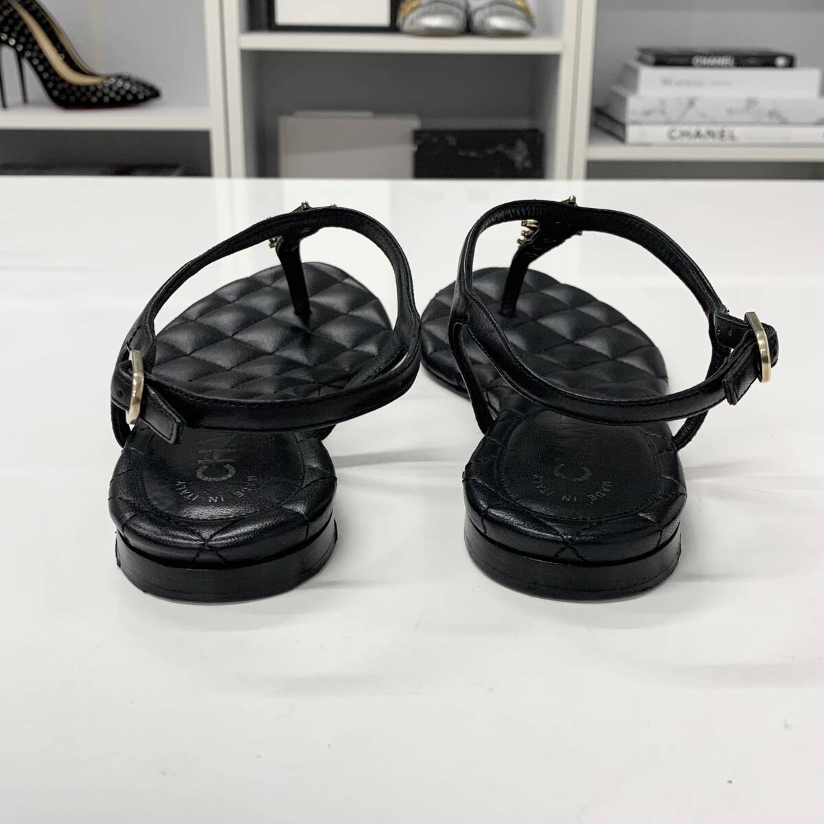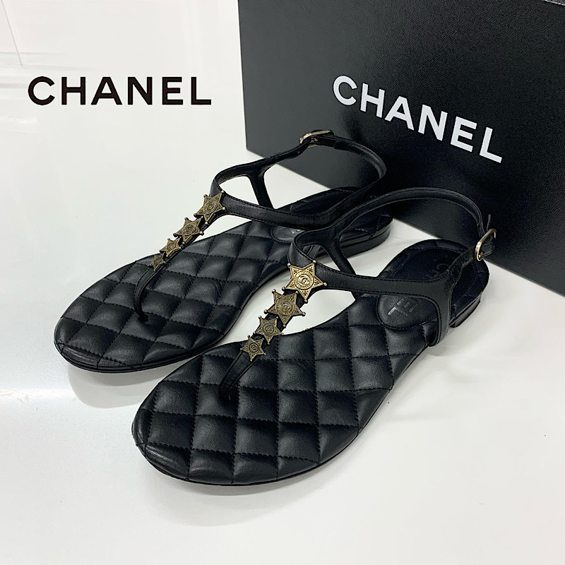 シャネル ココマーク スター マトラッセ レザー トングサンダル ブラック