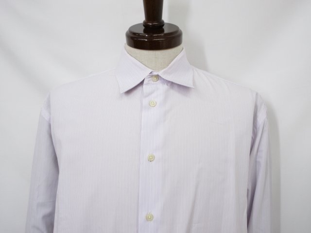 美品【アルマーニコレツィオーニ ARMANI COLLEZIONI】 ワイドカラー ストライプ柄 長袖シャツ (メンズ) size43 パープル系 ◇38MK6315◇