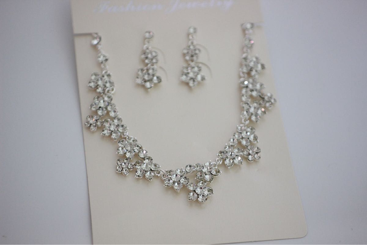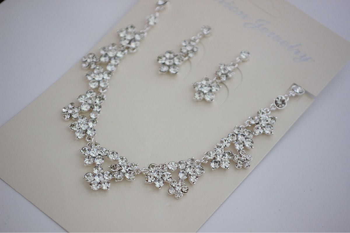 シルバーネックレス&イヤリング ブライダルアクセサリーセット
