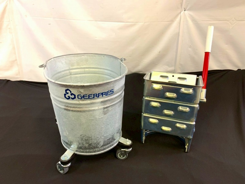 #【アメリカ製】未使用品 GEERPRES モップ絞り器 ドーリー付モップバケツ オーバルブリキバケツ 掃除用具 米軍放出 (140) HJ17QK-W#25