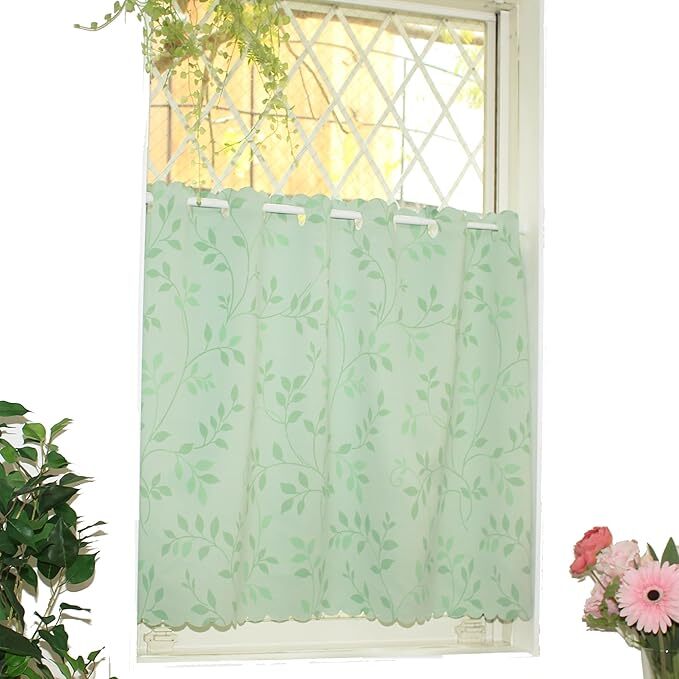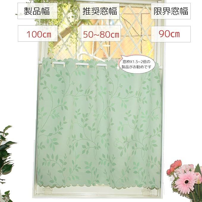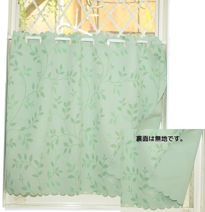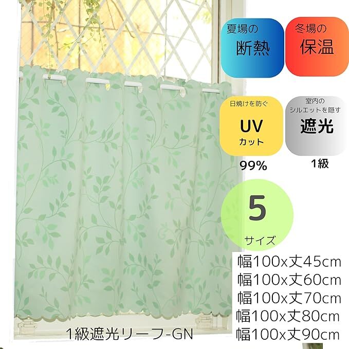 Amazon | cloth shop 布や カフェカーテン 小窓用 遮熱 断熱 【リーフ グリーン [遮光1級] 幅100cm x 丈90cm [1枚入]】
