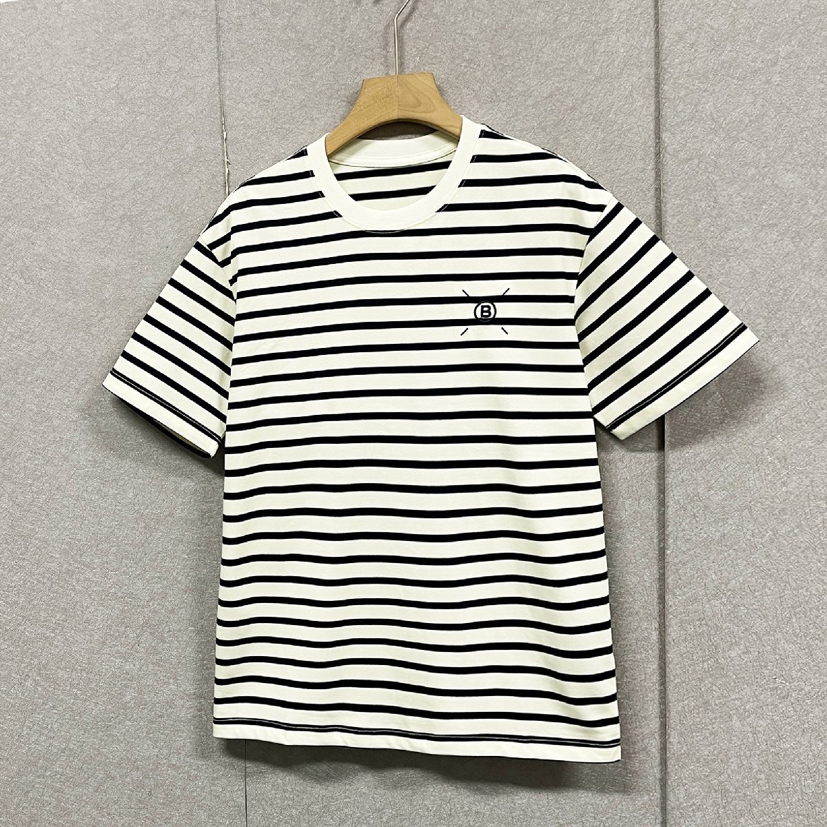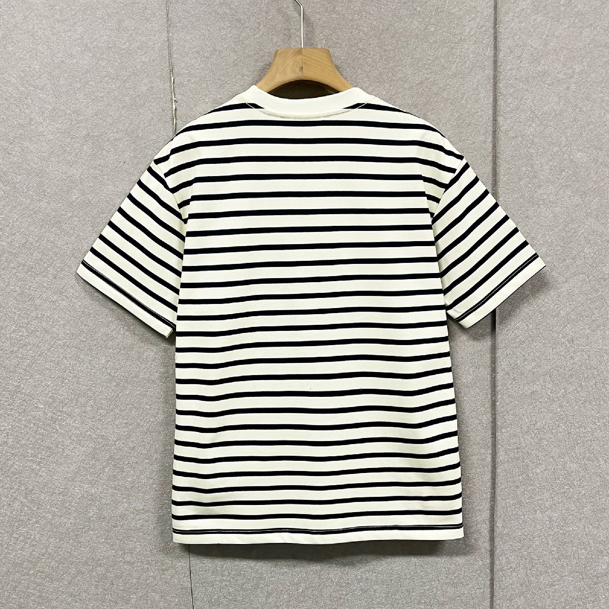 半袖Tシャツ イタリア製造 コットン100% 快適 通気 柔らか ストライプ柄 刺繍 丸首 スウェット プルオーバー 定番 男女兼用 通勤 夏 SIZE:M