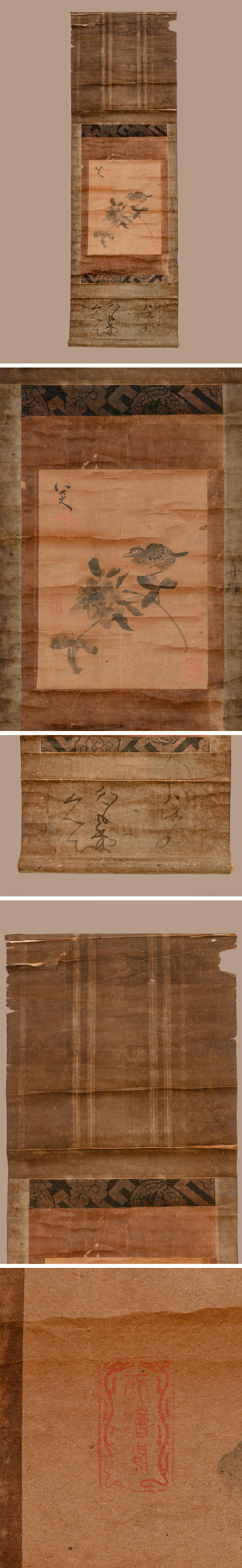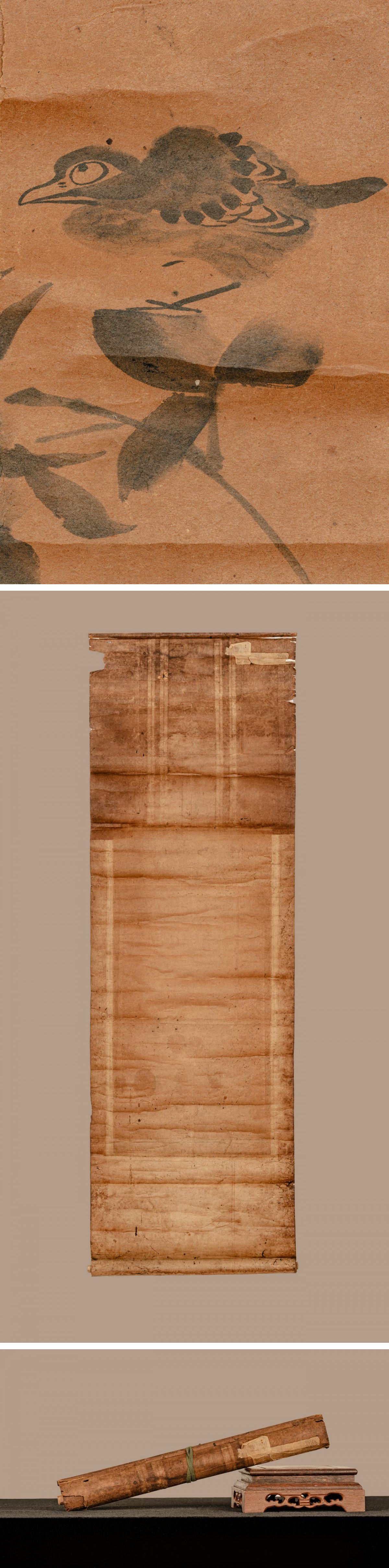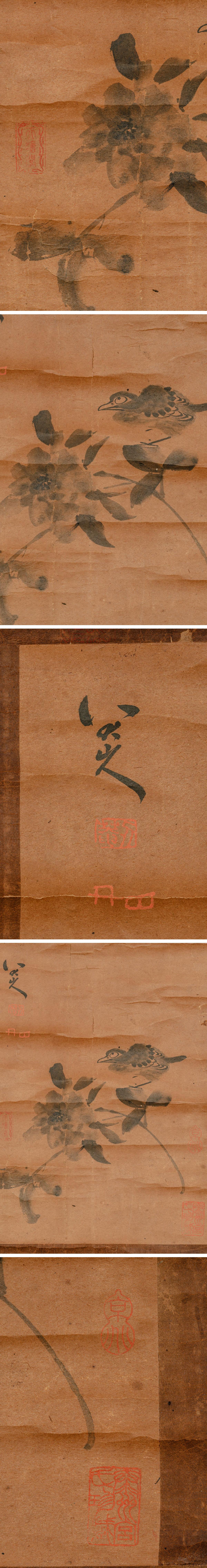 【清】中国清時代画家「八大山人書」紙本「花鳥図・掛け軸」真作 巻き物 中国画 墨寶妙品 中国書画 古美味 古美術7L6-26XC6