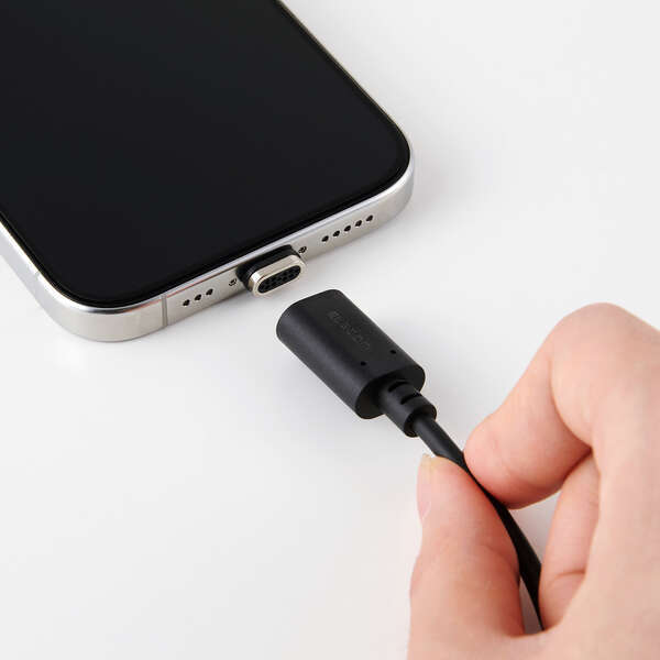 | ●磁力でしっかり接続するUSB Type-C着脱式コネクターを採用した、 USB-A - USB Type-Cケーブルです。端子をスマートフォンなどの機器に挿したまま、 ワンタッチでケーブルの着脱が可能 | |