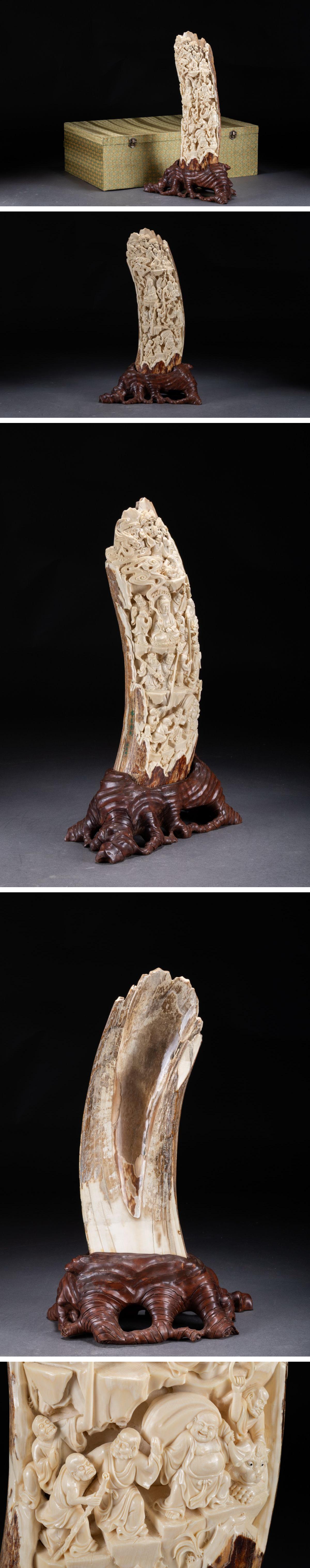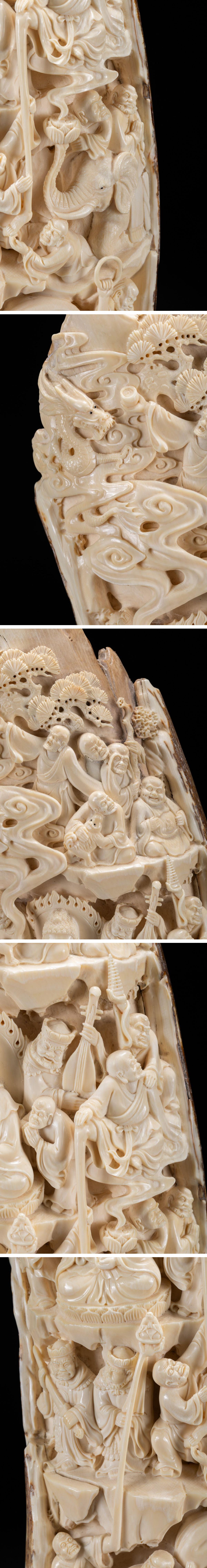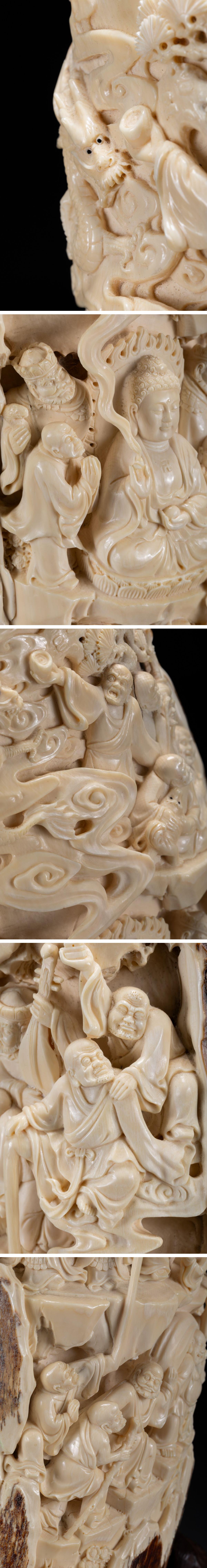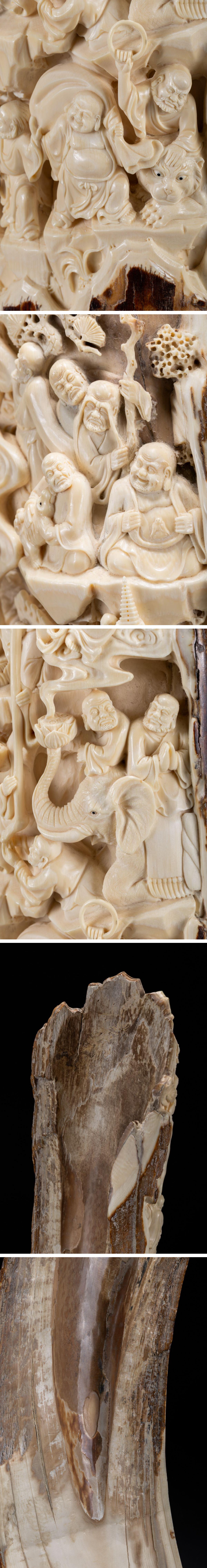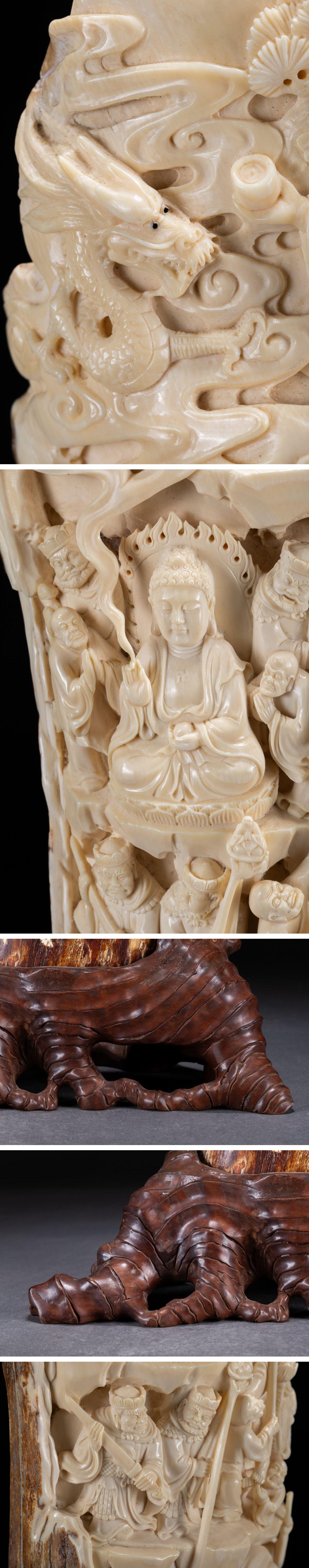 【華】時代舊藏 時代物 特殊白材 釈迦十八羅漢紋案頭置物 一本材 豪華芯料使用 時代物 古美術 骨董品A25070380-VQQ