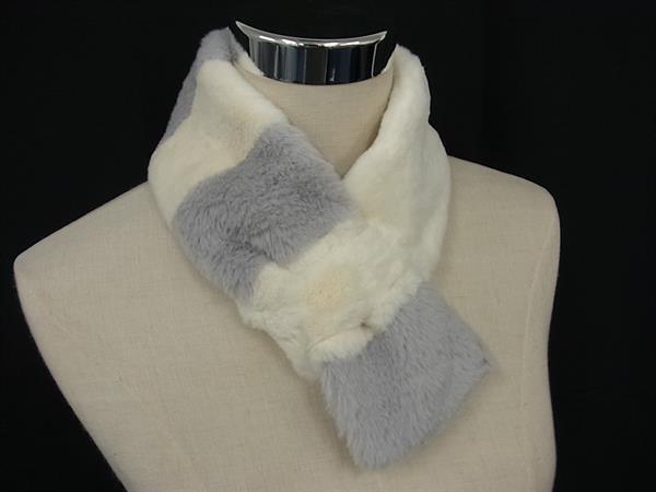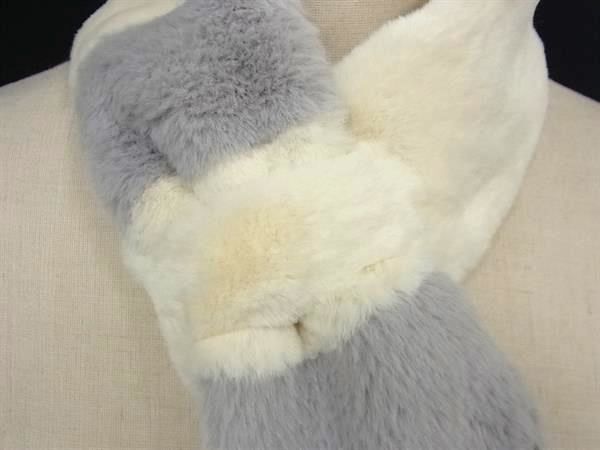 ■新品同様■ FURART ファーアート ポリエステル100% ティペット マフラー 防寒具 レディース アイボリー系×グレー系 DG0898