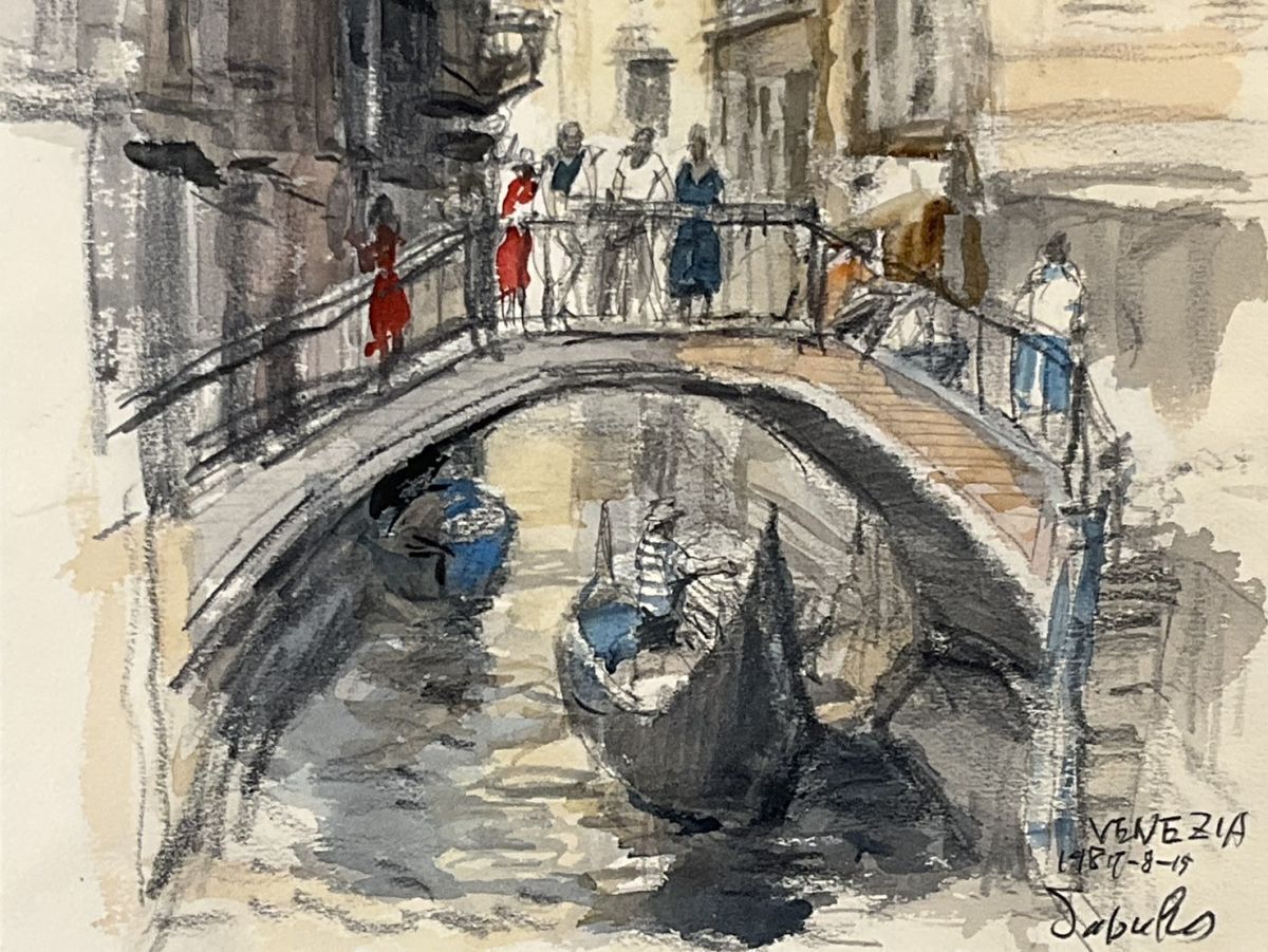 真作■水彩■斉藤三郎■『VENEZIA』■6号 ■1987年 額装 高級額 / 二科会委員■の出品となります。