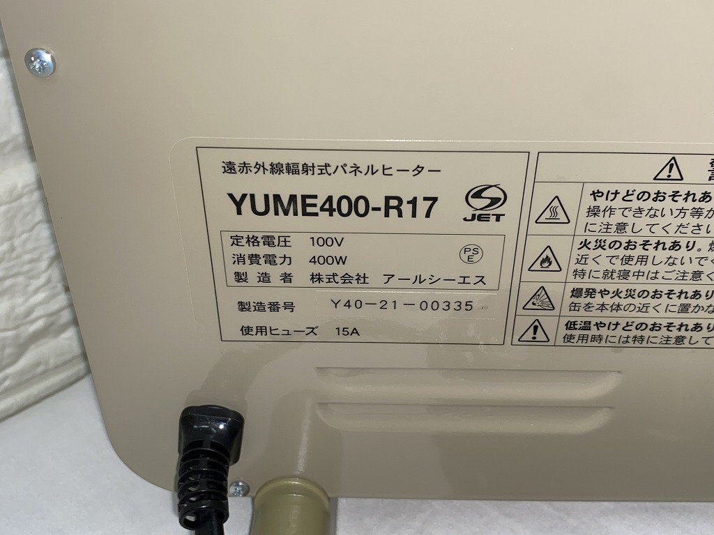 ★夢暖望 400型 遠赤外線 パネルヒーター 小スペース YUME400-R17★