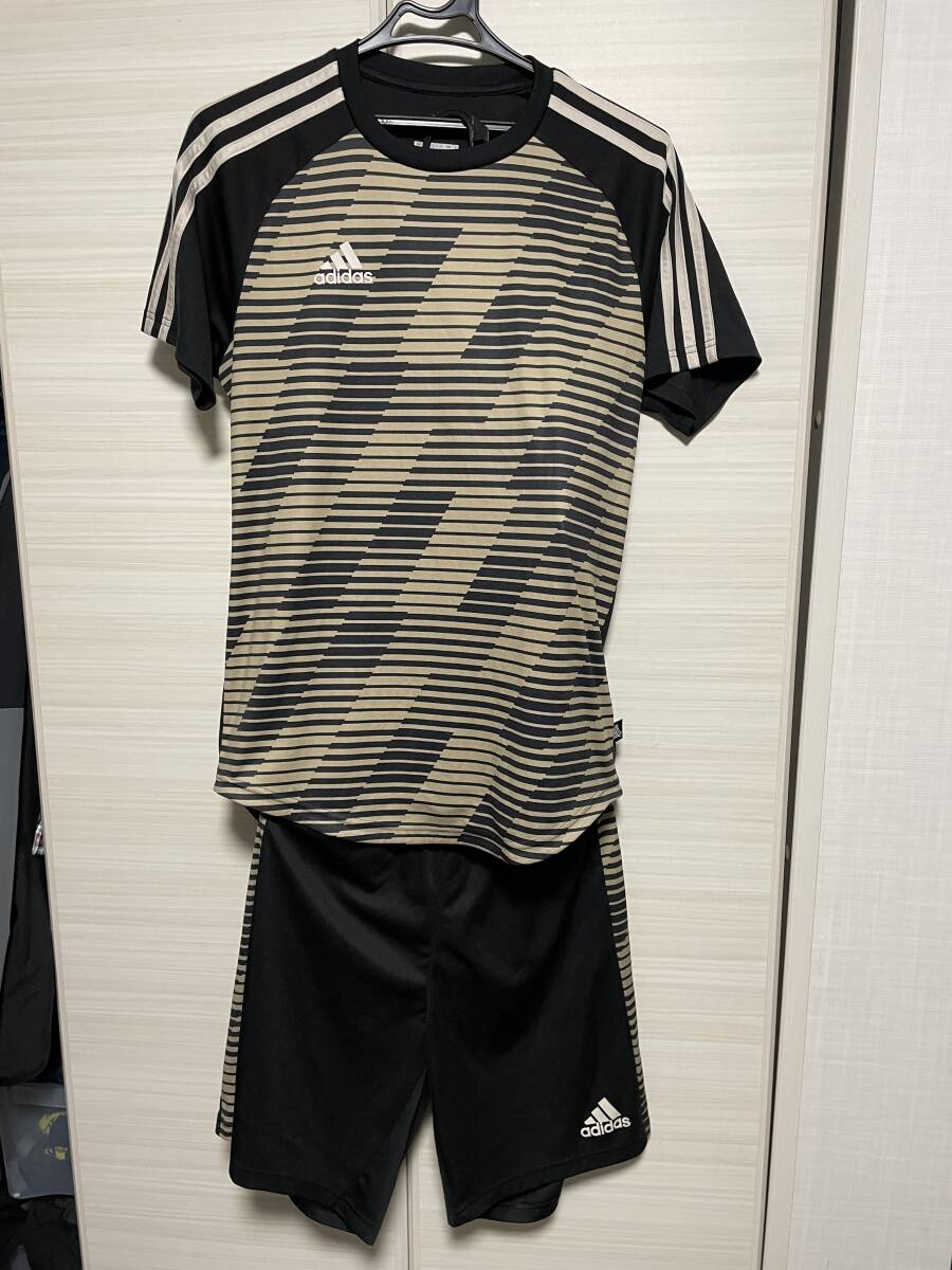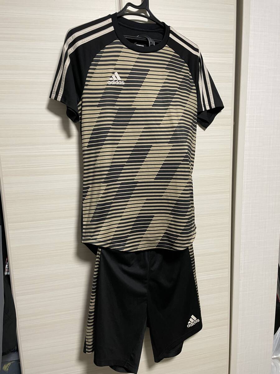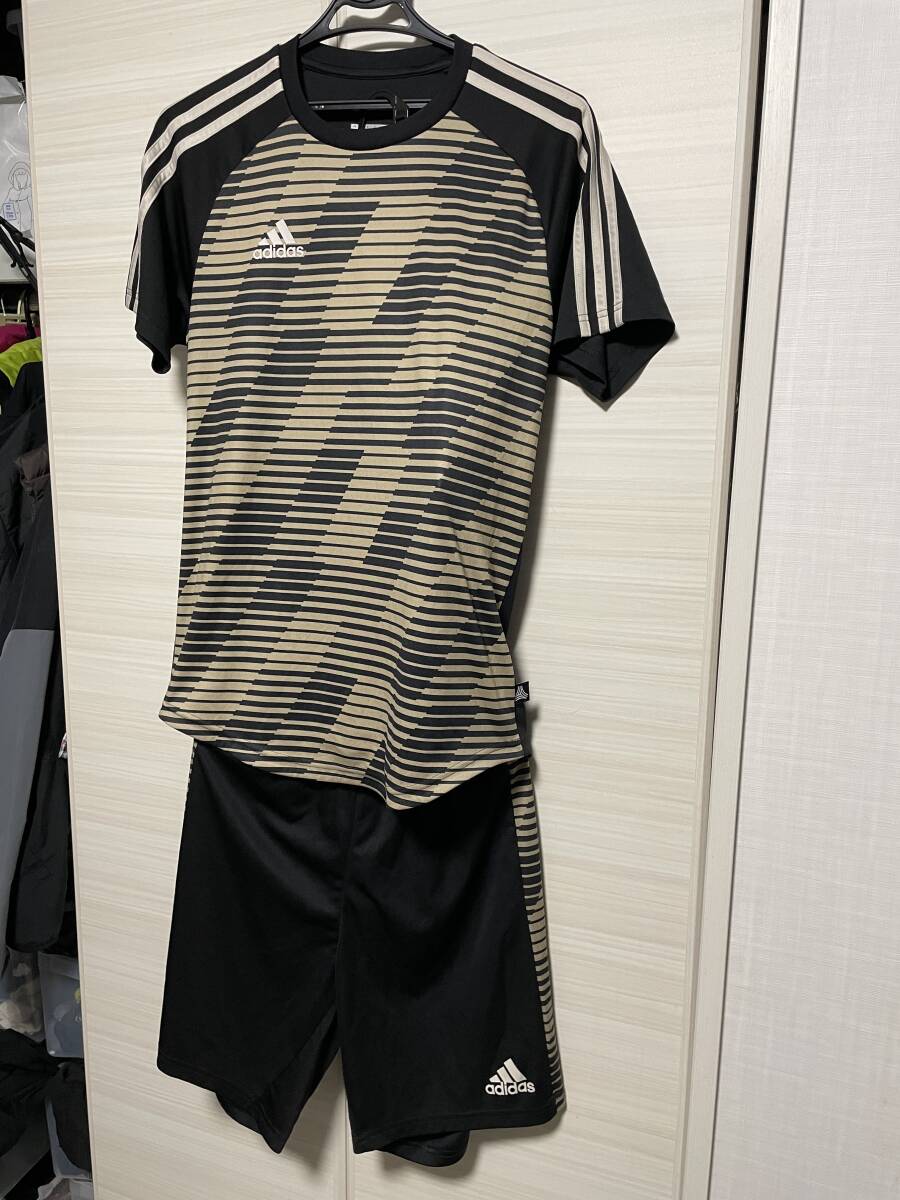ADIDAS アディダス プラクティスシャツ+短パン 上下セット 黒 Mサイズ(USED)~サッカー、フットサル、スポーツ、ジム、トレーニング~