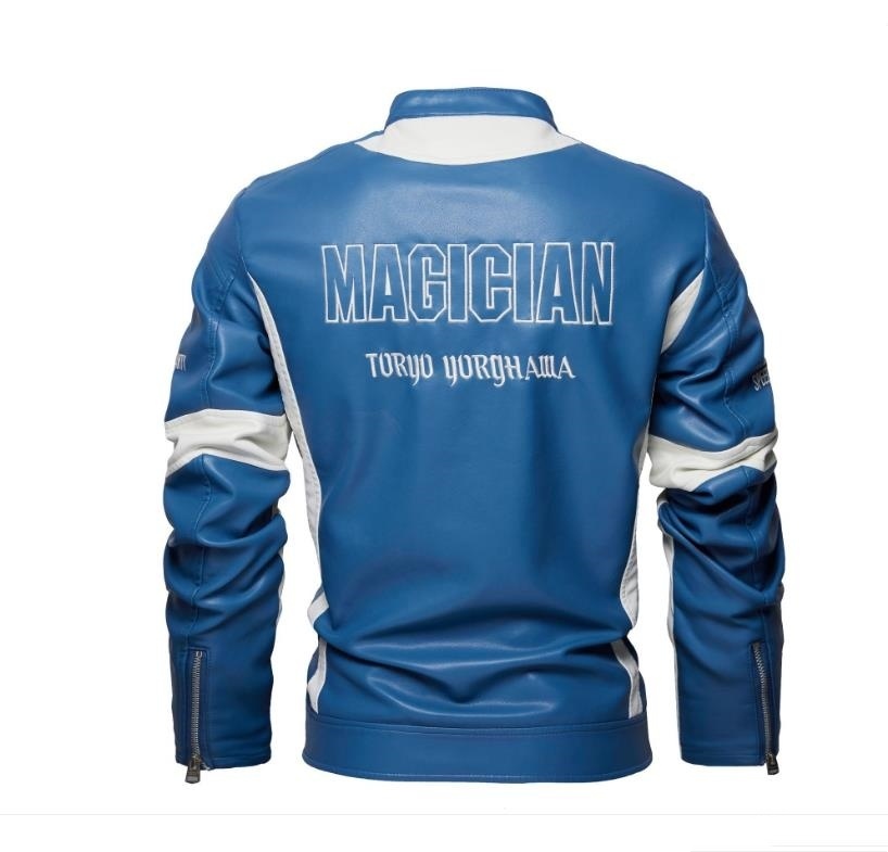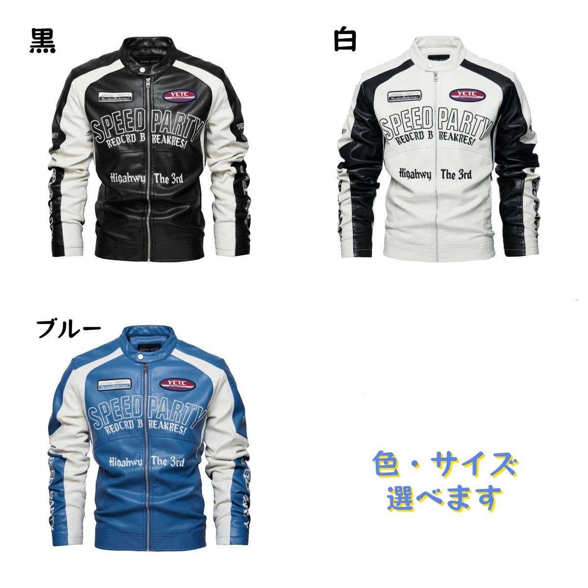 ライダースジャケット フェイクレザージャケット PUレザー フライトジャケット メンズ*新品 バイクウエア ジャンパー ブルゾン【2686】ブルー 4XL