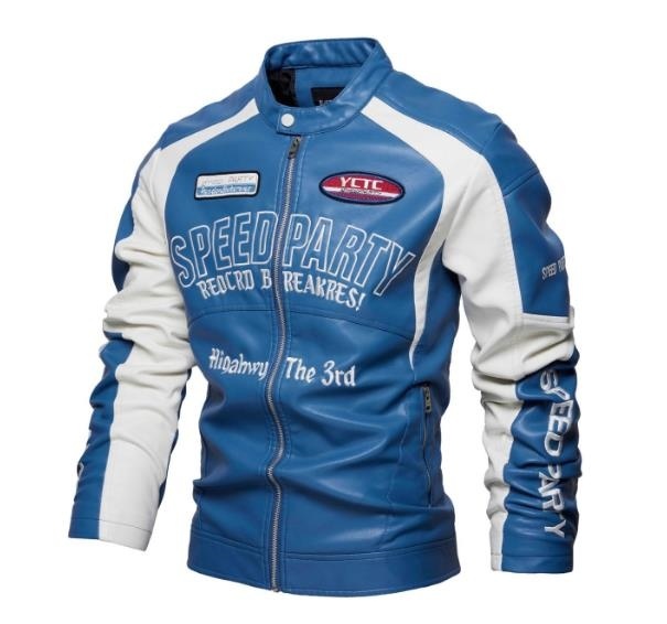 ライダースジャケットフェイクレザージャケット PUレザー メンズ*新品 バイクウエア ジャンパー ブルゾン【2686】ブルー 4XL
