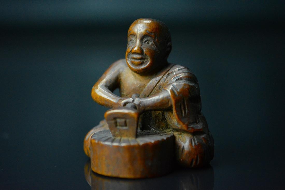 時代;『人物木彫根付』無垢彫刻 提物印籠緒締玉煙草入木彫彫刻 D228-17 |