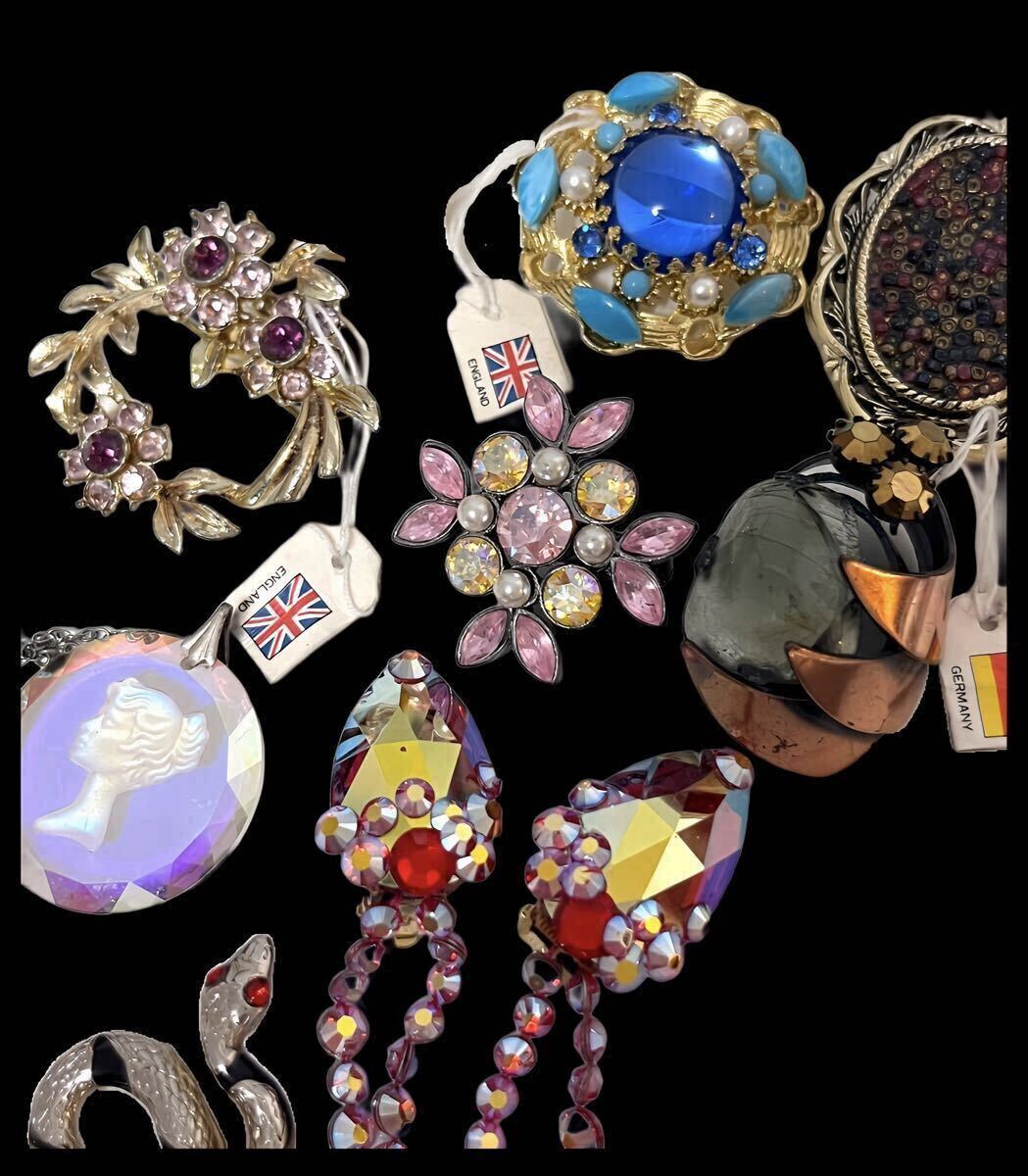 ヴィンテージアクセサリー/ヨーロッパ/アメリカ/イギリス/ドイツ/チェコ/日本製/ブローチ/イヤリング/ネックレス/まとめ売り/リメイク素材/卸/転売向け/アクセサリーパーツ