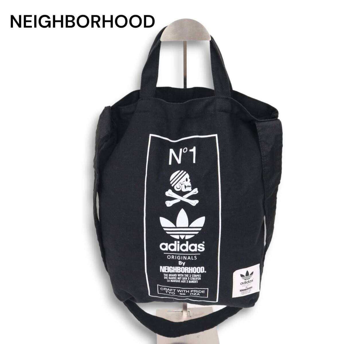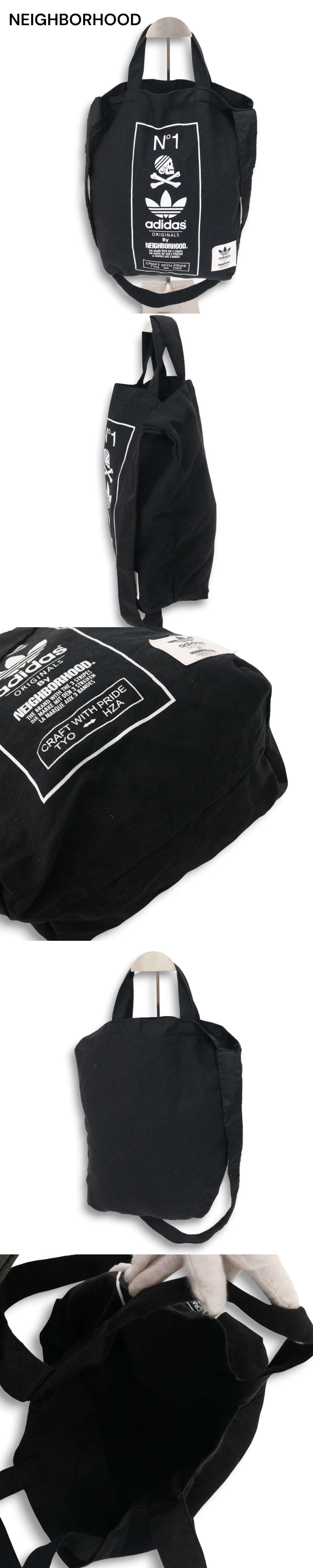 NEIGHBORHOOD × adidas ネイバーフッド × アディダス ロゴ プリント★ 2way ショルダー トート バッグ Sz.F メンズ 黒