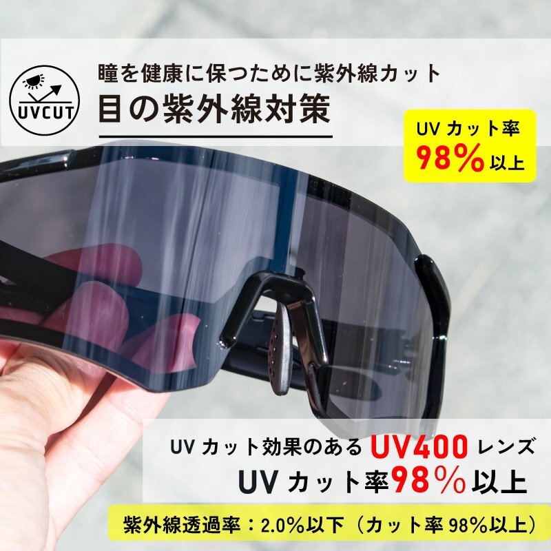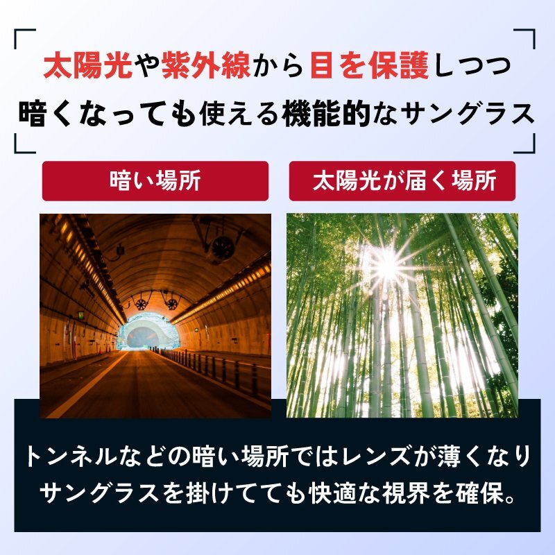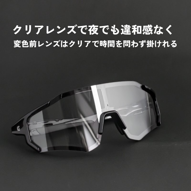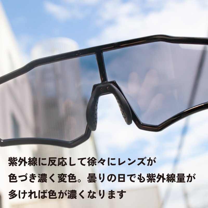 調光レンズとは紫外線(uv)量によりレンズが変色します。 室内などの紫外線が少ない場所ではレンズが薄くなり屋外などの紫外線が多い場所ではレンズが変色し濃くなります。 ロードバイクなどの自転車でのサイクリングでのトンネル区間では紫外線が届かないのでレンズが徐々に薄くなり 快適な視界を確保するのでサングラスを外すなどの作業をしなくても良いのでとても便利です。 時間問わずお使い頂けるので朝夜の自転車通勤でも活躍します。 また紫外線カット効果(UVカット率98%以上)もあり目元のケア、日焼け防止し紫外線対策に。 流行りのフルレンズなデザインは広い範囲で目元の効果を発揮し、ゴミや虫除けにもなります。 おしゃれなフレームデザインでかっこよく。 軽量で顔に触れる箇所は柔らかい素材になっているので長時間の装着も痛くなりにくい。 自転車(ロードバイク、クロスバイク、ミニベロロード他)やランニング、登山、ウォーキング、ゴルフ、釣りなどの様々なスポーツに。 [調光レンズ] 紫外線の量によってレンズが変色。 太陽光や紫外線から目を保護しつつ暗くなっても使える機能的な調光サングラス。 [クリアレンズ] 変色前はクリア(透明)で夜も違和感なく、時間帯問わず掛けられるので サングラスを外したりつけたりの作業をしなくていい。 [目の紫外線対策] UVカット効果のあるUV400レンズ。UVカット率98%以上。 紫外線からくる角膜へのダメージなど目の負担を和らげます。 紫外線透過率:2.0%以下(カット率98%以上) [超軽量] 耳掛け部分にくり抜き穴をつくる事によって極限まで軽さを追求。 超軽量の約27g!! [TR90&PCフレーム] 軽くてしなやか、弾力性があり変形してにくいので壊れにくい。 [痛くなりにくい] 顔に触れる部分は柔らかいゴム素材で痛くなりにくい。 人間工学に基づいて設計されたデザイン。 [調整可能なノーズパッド] 調整できるので締める事なく楽に。日本人の顔にフィットする設計。 [インナーフレーム付属] 度数付きのレンズを装着できるインナーフレームを付属しています。 (度付きレンズは付属していません。) [充実のセット内容] 調光サングラスにハードケース、ソフトケース、メガネ拭き、インナーフレームのセット。 商品内容調光サングラス、メガネ拭き、ハードケース、ソフトケース、インナーフレーム 仕様UV400紫外線カット、調整可能の鼻当て 紫外線透過率2.0%以下(カット率98%以上) 材質PC調光レンズ、PCテンプル、TRゴムフレーム サイズ(約)フロント幅:140mm、 高さ:55mm/テンプル長さ:125mm、ブリッジ幅:30mm 重量約27g ・商品は入荷によりキズがある場合があります。 その場合、保証対象外になりますのでご了承お願い致します。 ・ディスプレイ環境により実物と色が異なる場合が有ります。 ・入荷時期により予告無く一部仕様変更する場合が有ります。 |