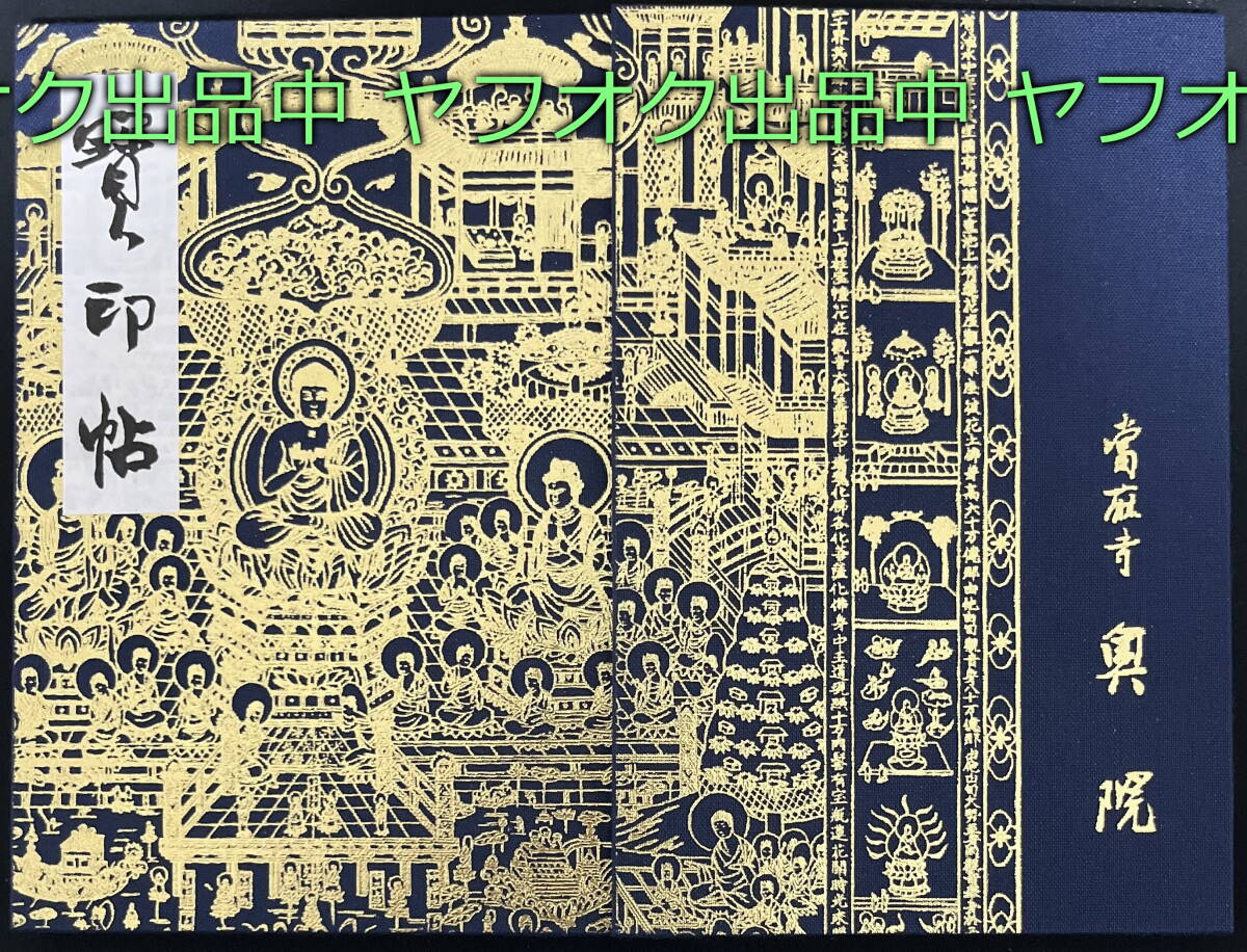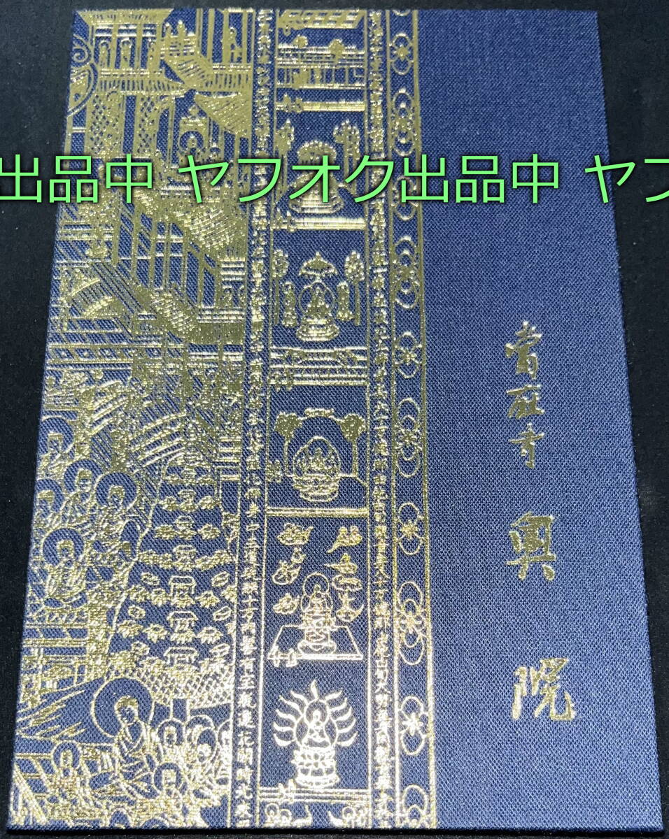 説明:紺地の表紙には極楽浄土の箔押しがされています。内側のページには鳥ノ子紙と呼ばれる厚手の高級和紙が使用されています。ページ構造はじゃばら状です。