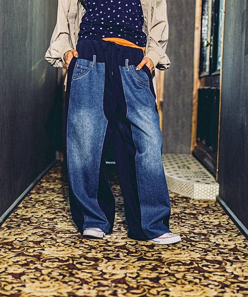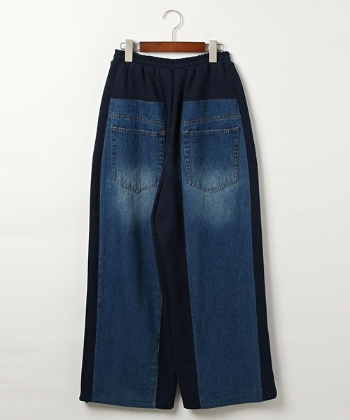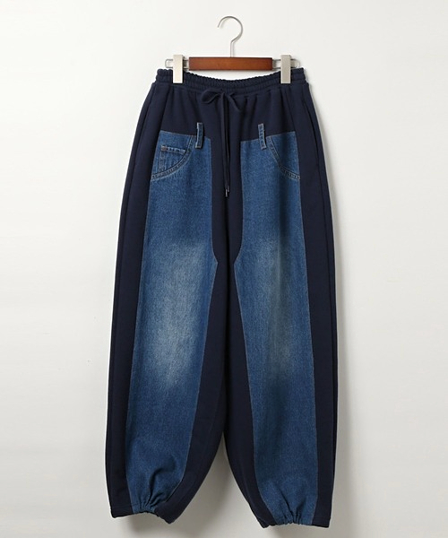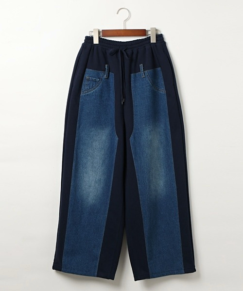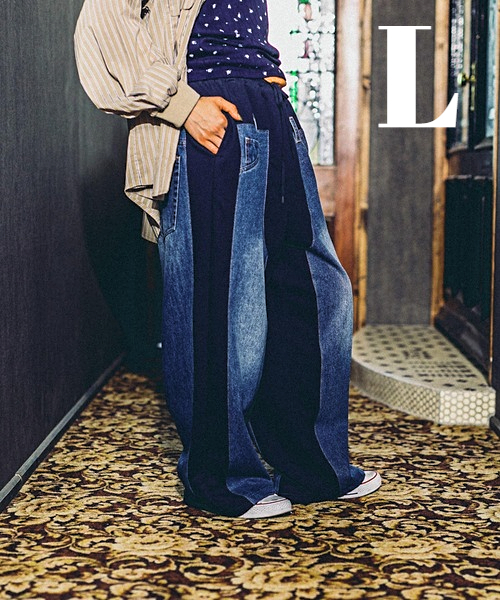L 新品【niko and... MODE NORM CORE デニムパッチワークパンツ 裏毛 デニム 異素材コンビネーション イージーパンツ ニコ アンド...】