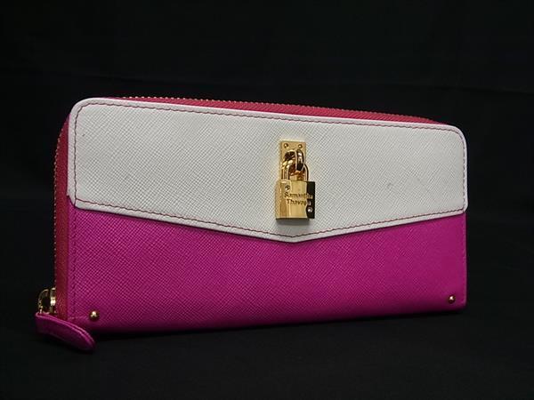 ■美品■Samantha Thavasa サマンサタバサ プチチョイス レザー ラウンドファスナー 長財布 ショッキングピンク系×ホワイト系 DI7460