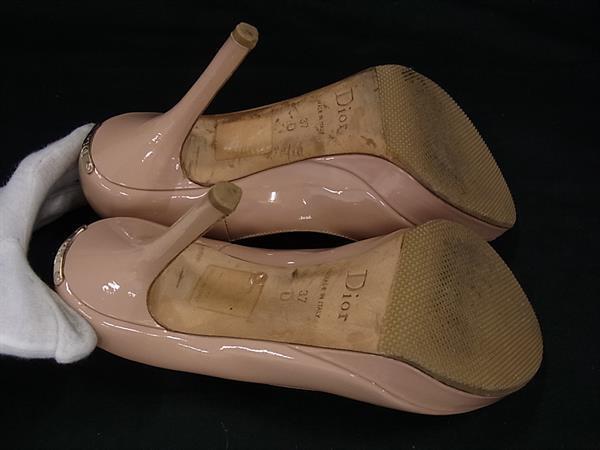 ChristianDior クリスチャンディオール パテントレザー ヒール パンプス サイズ 37(約24cm) 靴 ベージュ系 DI3886