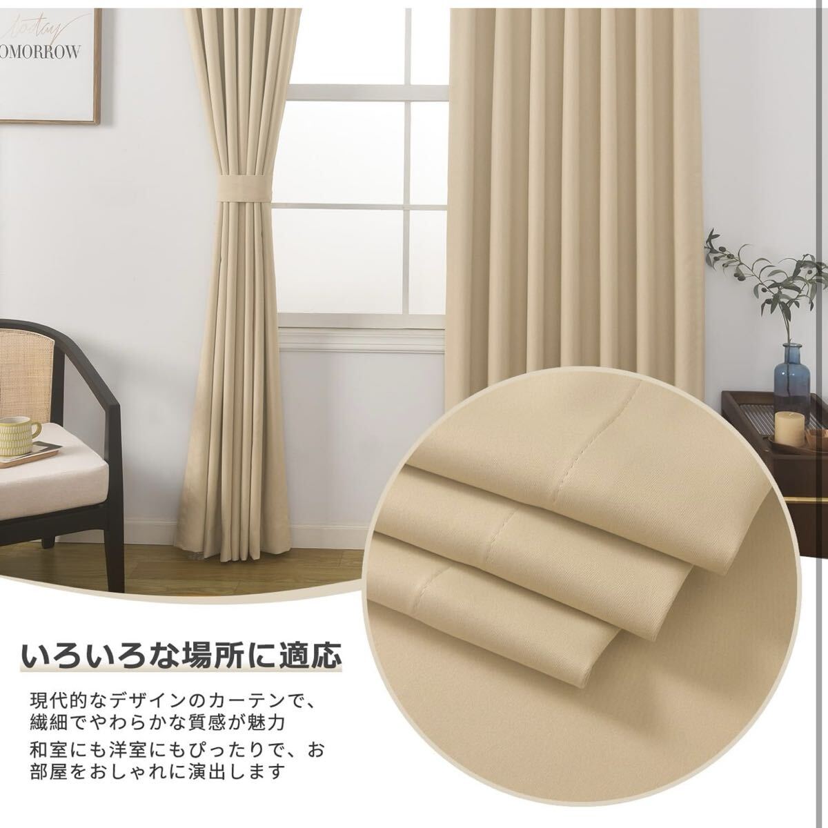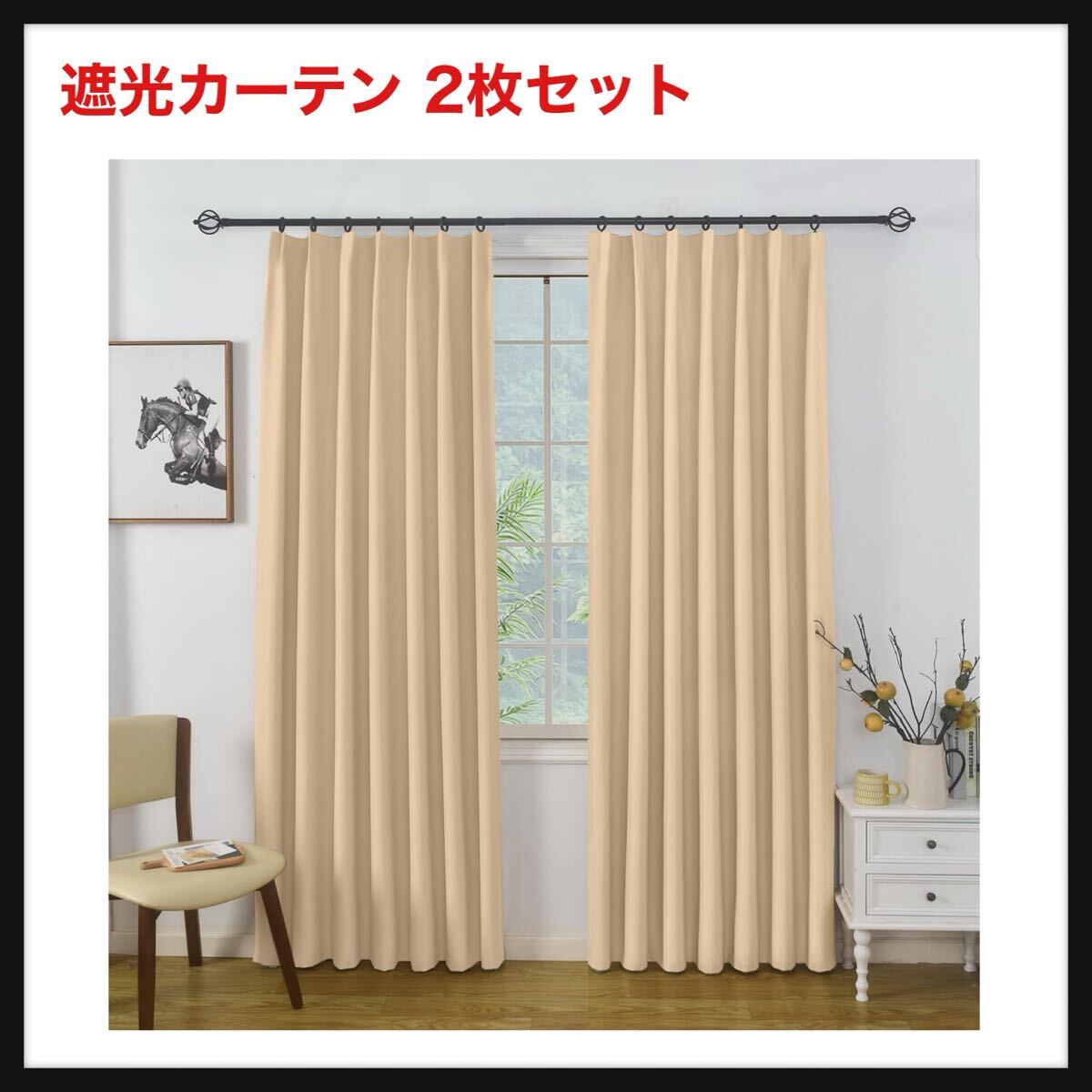 遮光カーテン 2枚セット 1級遮光 防音 断熱 既成カーテン 厚地 無地 スタイリッシュ 省エネ 調節可能フック付き 洗濯可 リビング寝室カフェ用 (ベージュ, 幅100cm×丈110cm-2枚)
