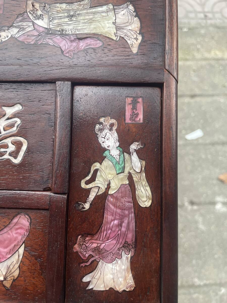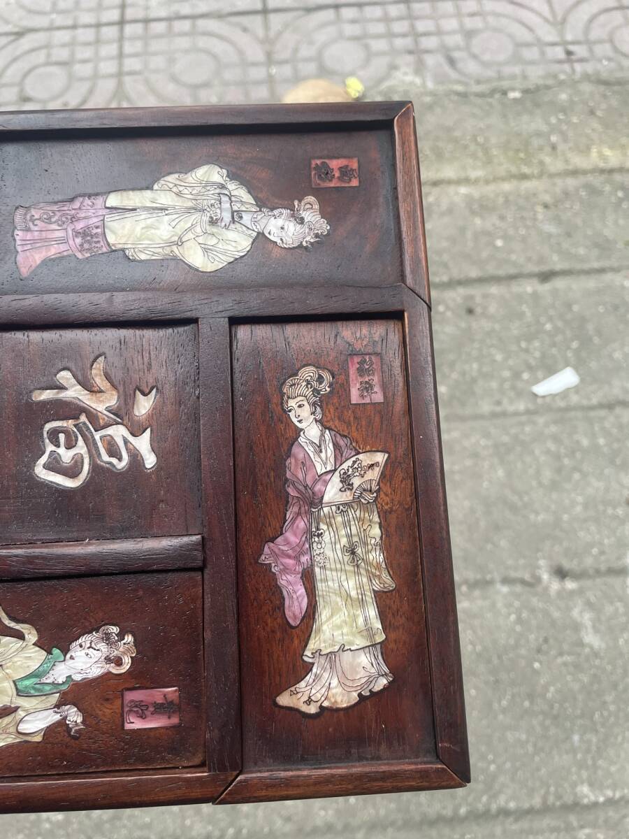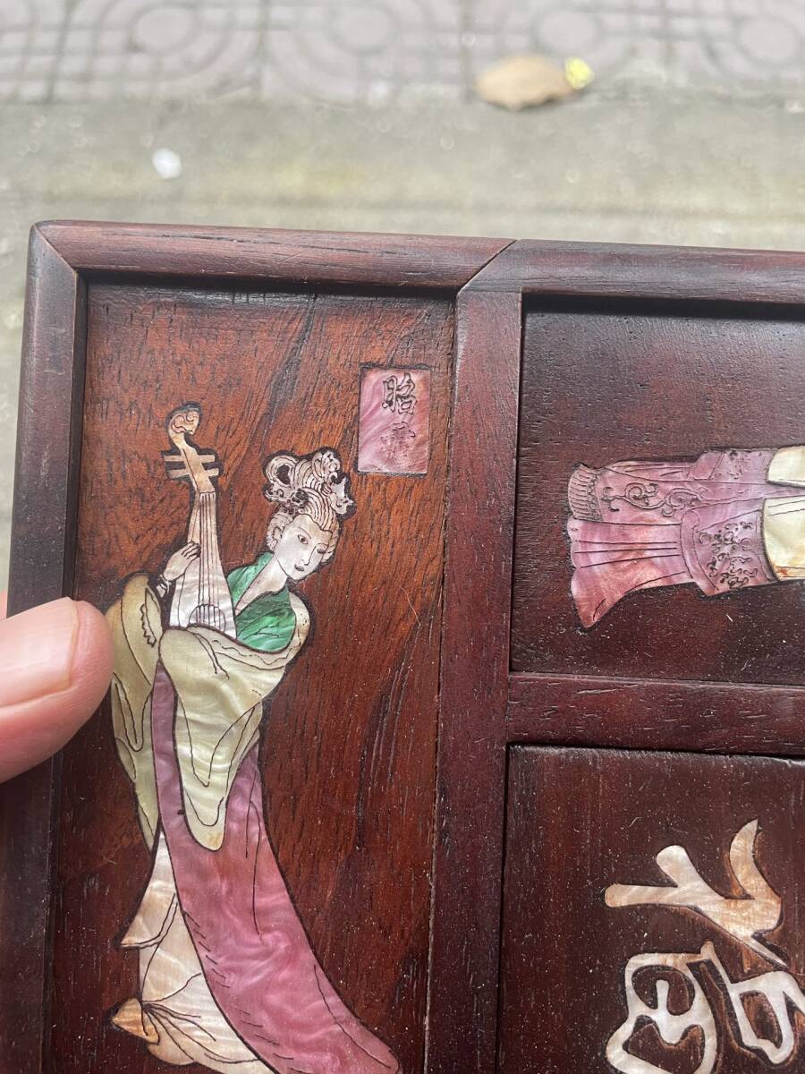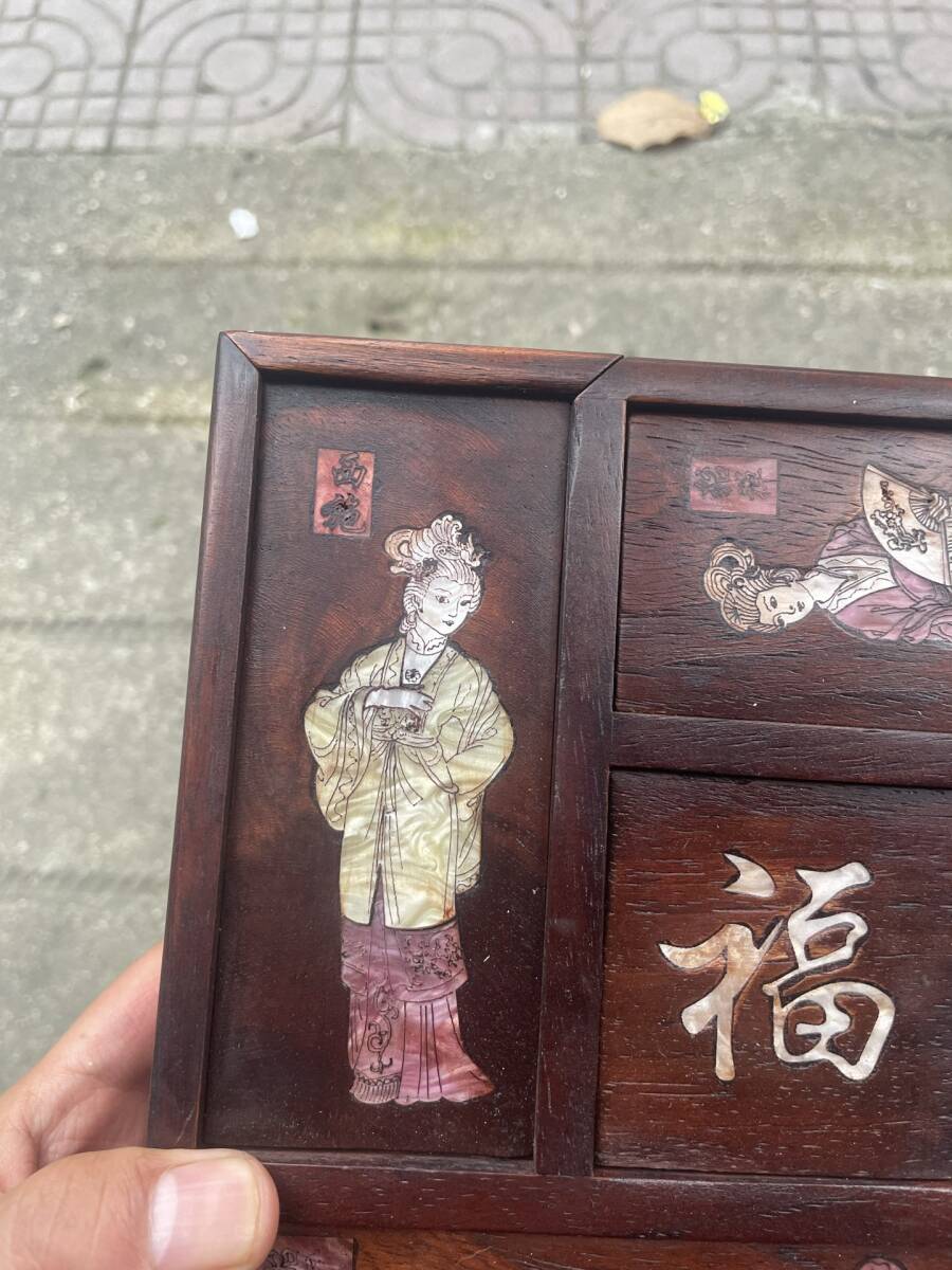 【超珍館蔵】花梨木製 細密彫 貝殼嵌 四大美女紋 五開盒 置物 賞物 古賞物 古美術品 稀少珍蔵品