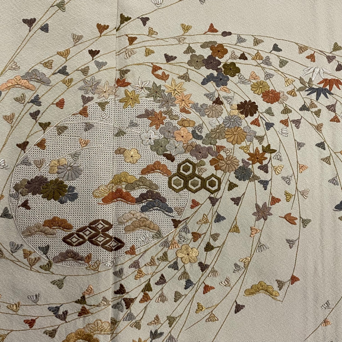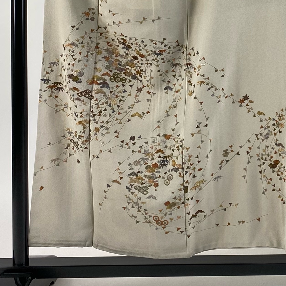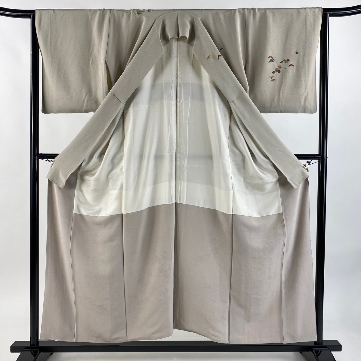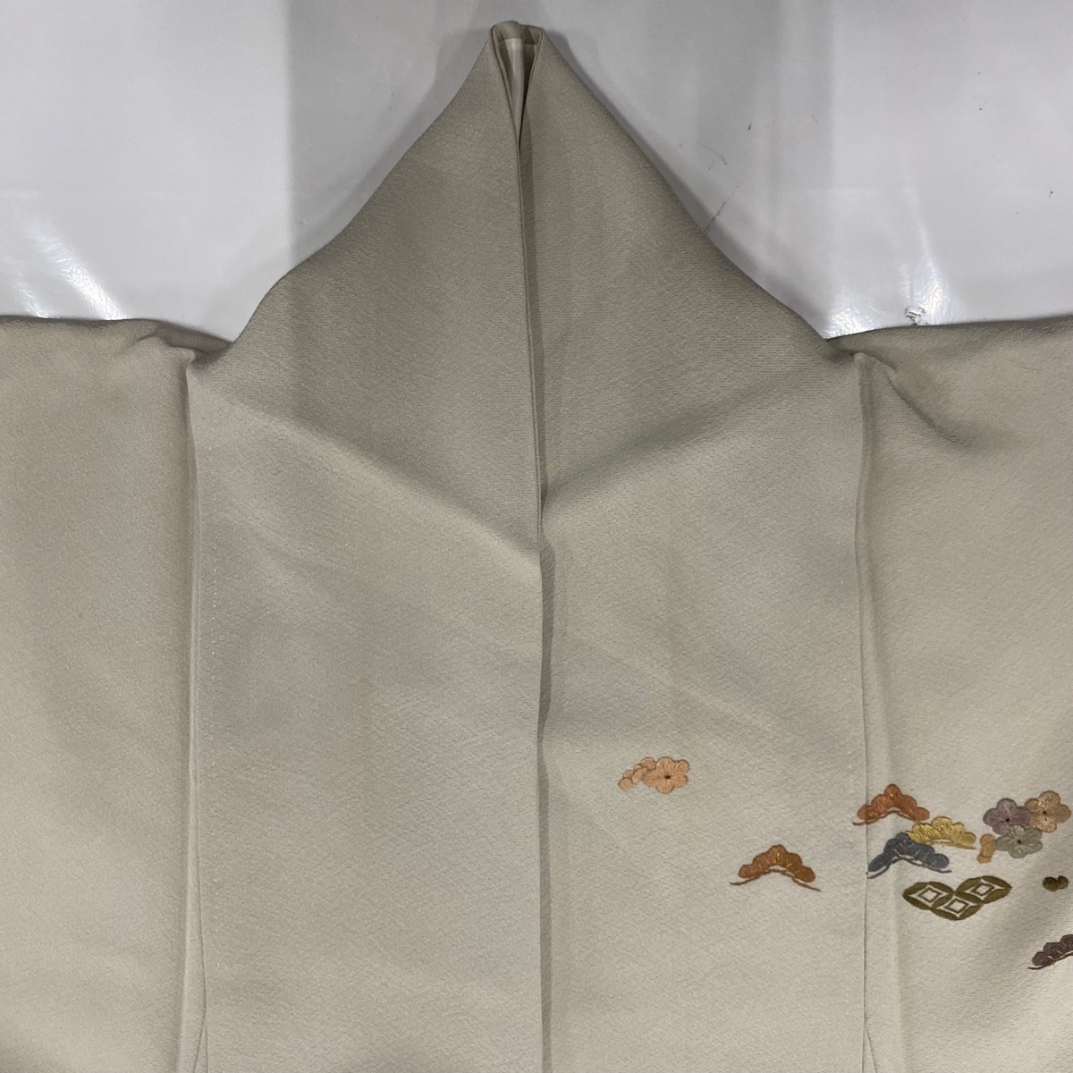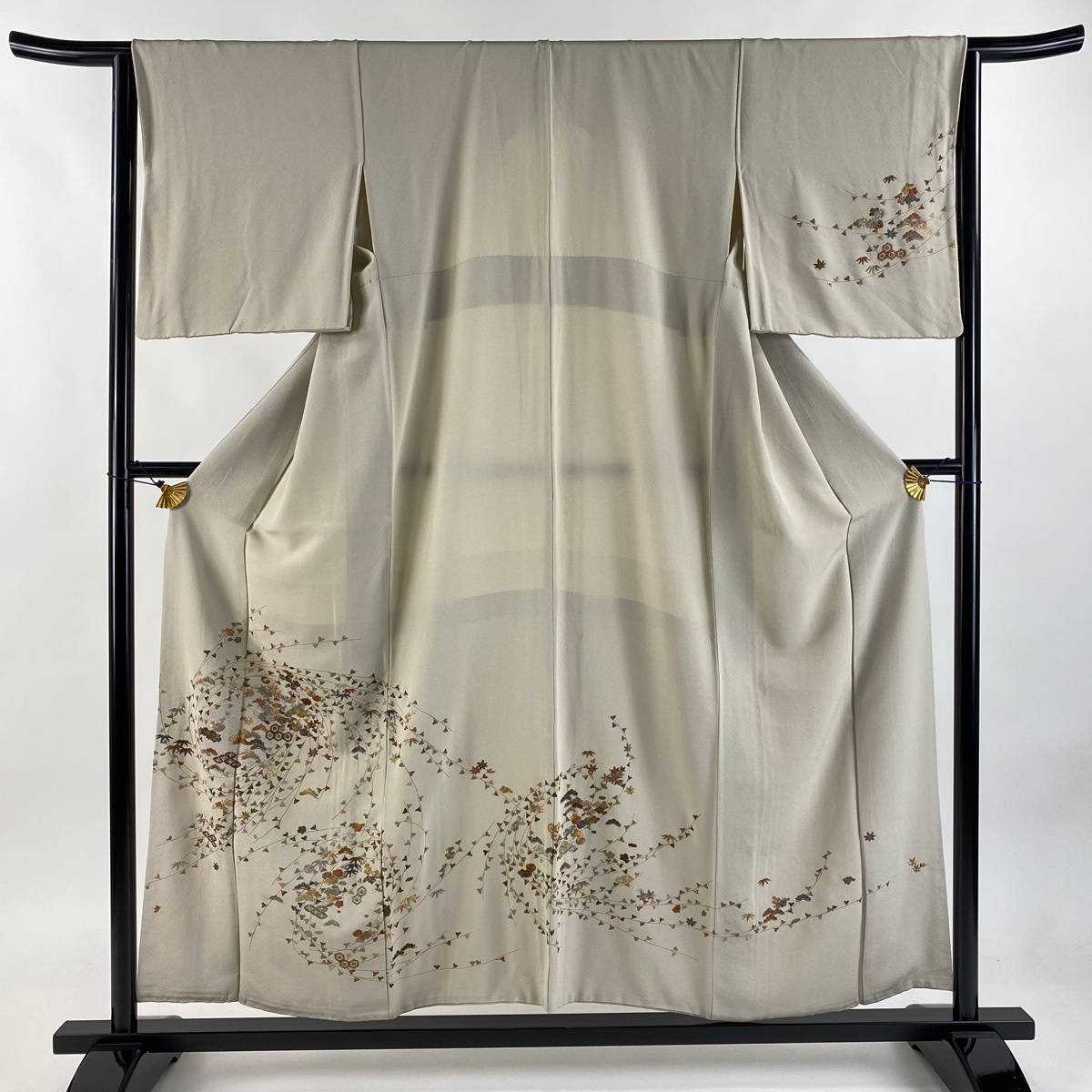 | 訪問着 秀品 松竹梅 菊 金糸 刺繍 灰茶 袷 身丈155 裄丈65 M 正絹 【中古】 |