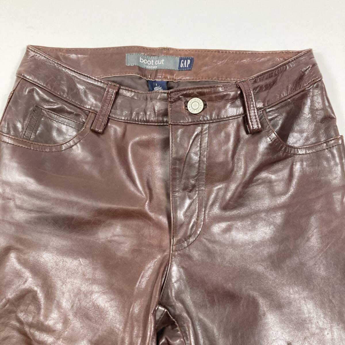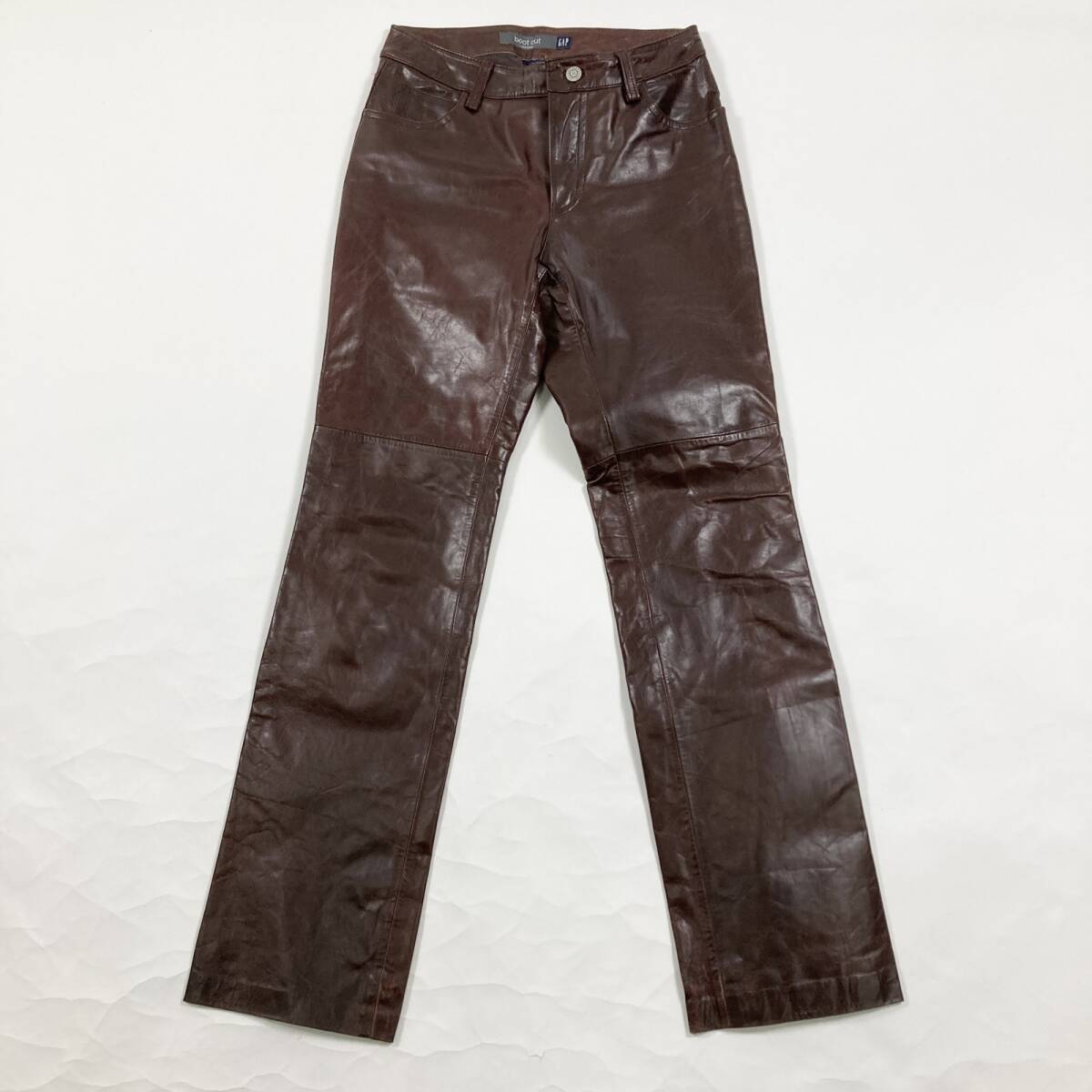 ★ GAP ギャップ パンツ ボトムス レザー 牛革 本革 ブーツカット ブラウン サイズ1 レディース 0.5kg