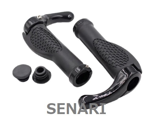 R-10/自転車/ 左右セット! バーエンドバー付き エルゴ グリップ 汎用 取付簡単 疲労軽減 ゴム+金属 / ブラック 黒色