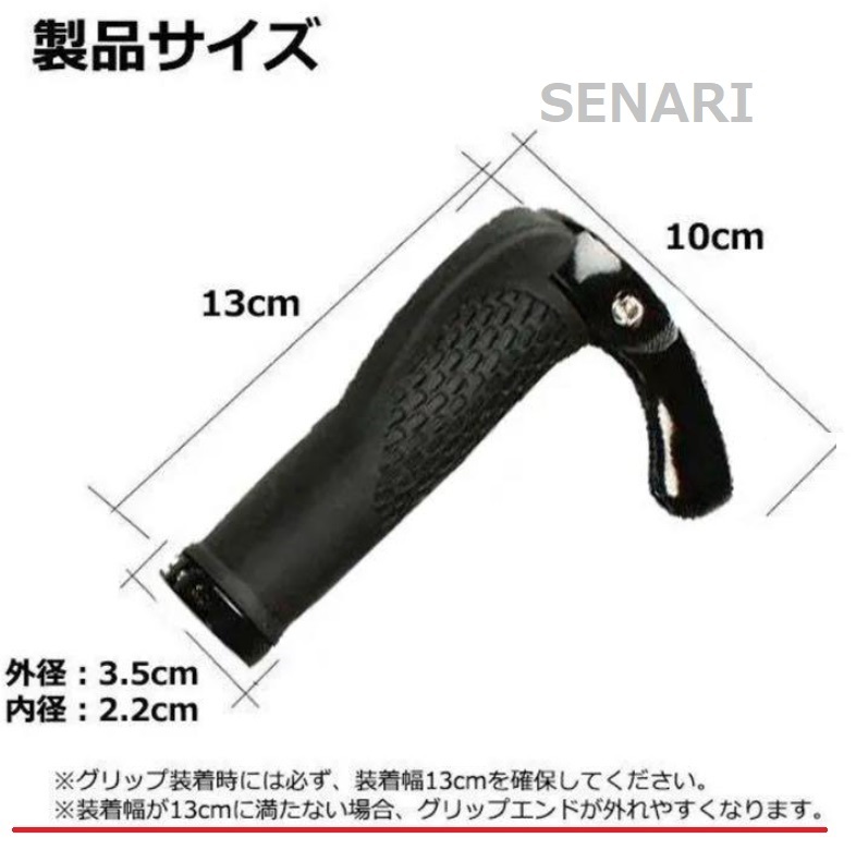ハンドルの太さ、装着幅が13cmに満たない場合など、グリップエンドが外れやすい場合がございます。予めご了承ください。