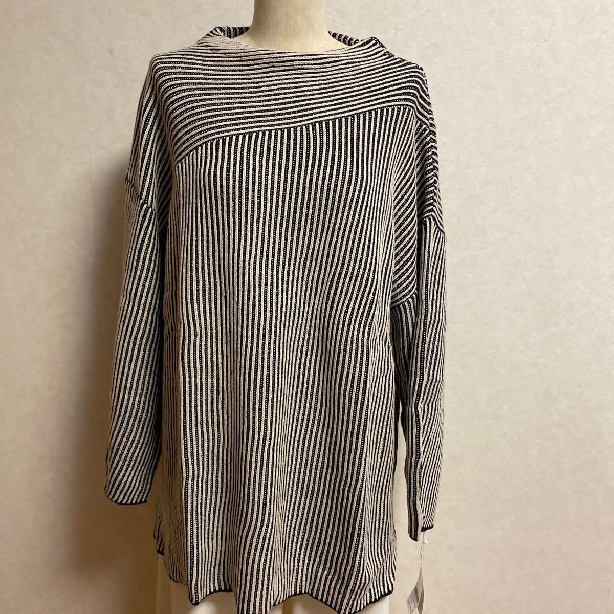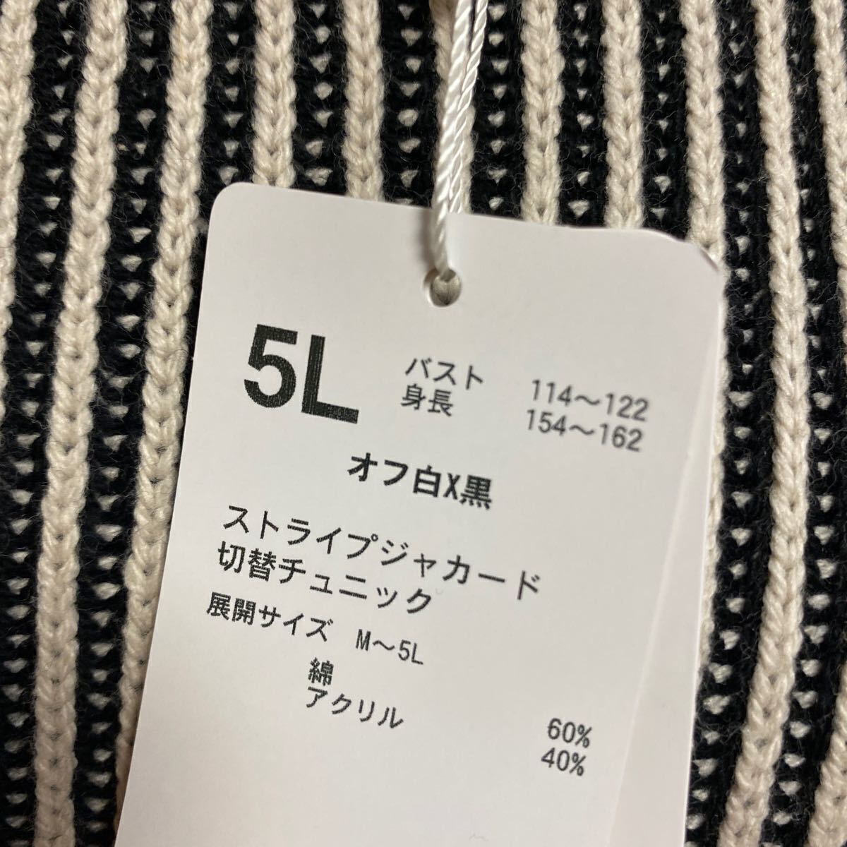 KN 1783*5L 大きいサイズ ストライプジャガード切り替えチュニック