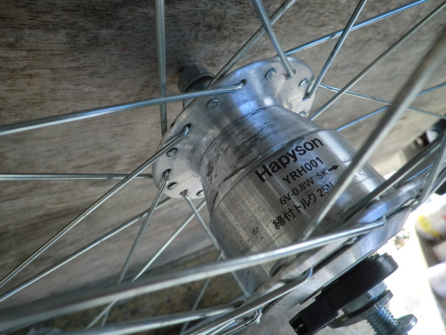 | ★商品説明★ | ★携帯からご覧の方及び発送料を聞く方がいらっしゃいますが送料等発送情報等下にありますので最後までよくお読み下さい。 ★評価の悪い方及び新規の方のご入札は1度質問コーナーよりご連絡下さい。 ご連絡の無い方のご入札はイタズラ・トラブル防止の為此方の判断で削除する場合がありますご了承下さい。 ★宅配便発送分及びゆうパックの場合必ずお読み下さい★ ※集荷・配達不可地域につきましては、予告無く変更となる可能性がございます。 お急ぎの方、遅延にご理解いただけない方は入札ご遠慮ください。ご落札の方には、 状況が判明次第ご連絡をさせていただきます。 大変ご迷惑をお掛けいたしますが、ご了承の程よろしくお願い申し上げます。 ★バイクや自転車・車の部品は消耗品です。完全クレーム対応致しません。保証等お考えの方はお店で整備された物を ご購入下さい。現状販売です。(現状販売の意味の判らない方はご遠慮下さい。) ★商品の詳細は文字では説明出来ない部分が有ります。ごくまれに、説明文に無い等アゲアシ取りをされる方 や神経質な方は、ご遠慮下さい。ご入札は良くお考えの上宜しくお願い致します。 ★時々多数本ご入用で同梱はと聞かれますが同一のホイール2本同梱でギリギリ160サイズで大丈夫ですが キズや絡まり等ご理解・ご了承頂ければご対応致します。 リアとフロント等異形の同梱は170サイズ以上になり ゆうパック又は宅配便着払いのみの発送になります。料金は後日お知らせ致します。 その他ホイールや数本は梱包してみないと判りません。 ご理解・ご了承下さい。 ★動作確認済み。ホイールはアルミです。 ★ライト切れの無いLEDライトです。 ★ロックナット(エンド)幅:100mm。実寸ですので、若干の誤差はご了承ください。 ★26×1 3/8。 ★ライト:Hapyson YRS333 LED AUTO LIGHT。焼け・くもり・キズ・シミ・メッキ剥がれ有り。 ★ダイナモ:Hapyson YRH001。スポークサビ有り。キズ・サビ有り。 ★ホイール:キズ・サビ有り。 ★ネジ類:サビ有りますのでおまけとお考え下さい。要らない方は落札の際お申し付け下さい、外してお送り致します。 ★タイヤ:山5分程度ですのですぐに交換する事も無いと思いますが早めの交換をお薦めします。(個人的見解) (サイドひび割れ有ります) ★取り付けのコツは締めすぎず緩すぎず車輪が違和感無く回る様に取り付ければ大丈夫です。 ゴリゴリ音があれば締め過ぎです、その時はライト点灯しません。 ★締めるコツですがナットに負荷がかかりきつくなった時1回又は2回程クッかクックッとご自身が負荷がかかる状態が だいたい10kg前後ぐらいの最良な締め付け具合です。 これを覚えると家電・タイヤ交換等回して締める物は大抵大丈夫です。(全般に保証している物では有りません) ★自転車・車バイクの様に不安が有る物は外れたら怖いと過剰に力が入り結構きつく締める場合が 心の中で知らず知らず生まれます。お気を付け下さい。 ★一番判る判断テストは上下逆さま(反対にして)で車輪を指で軽く回します。 その時ゴリゴリに締めますとカックンカックン・1マスメ~2マスメ間隔等に カカクンカカクンと車輪の負荷がかかり上手く回らない車輪が止まる状態が締めすぎです。 早く・強く回すと判りづらいです。ユックリとお願いします。 ★正常は指で軽く回しますと普通に違和感無くスーット車輪が回ります。 その際明るい内はライトのセンサー部分の本体後に携帯のカメラ部分のような窓が有りますのでここを押さえ光を センサーに関知させないで行うと点きます。 ★結構敏感で精密な部分ですのでビニールテープの黒かガムテープ・黒の布等で塞がないと関知して明るい内は 点灯しません。夜であればそのままで点灯します。 ★大事な事ですがホイール(ダイナモ)とライトの線がちゃんと繋がっていなければ付きませんお気お付け下さい。 ★LED以外稀にライトの中にある銅版にライトが接触してなければ球を交換しても付きませんので銅版を軽く曲げて 球に接触するようにして下さい。球は消耗品ですので切れている時は交換して下さい。対応は致しません。 ★テストはスチールのフロントフォークでしておりますアルミ等特殊な物は点かない可能性が有りますので ネット・自転車屋さん・判る方に聞いた上でご入札お願い致します。その際安易に落札され点灯しない等 一切返品・返金等対応致しませんのでご了承頂いた方のみ宜しくお願い致します。 ★ライトが付けれるある程度の車体なら、ポン付けで坂・雨等気にせず夜になれば楽々にライト点灯出来る機能です。 ★全体に年相応のサビ・キズ有ります。 ★発送は記載されているのみです。他の発送は不可になります。梱包代を含んだ金額になりますので、 ご理解頂いた方のみご入札下さい。実際のサイズ・重量とは異なります。 ★割れ欠け見当たりませんが細かい部分は未チェックですので大事な部分はご質問で確認して下さい。 ★質問で確認の