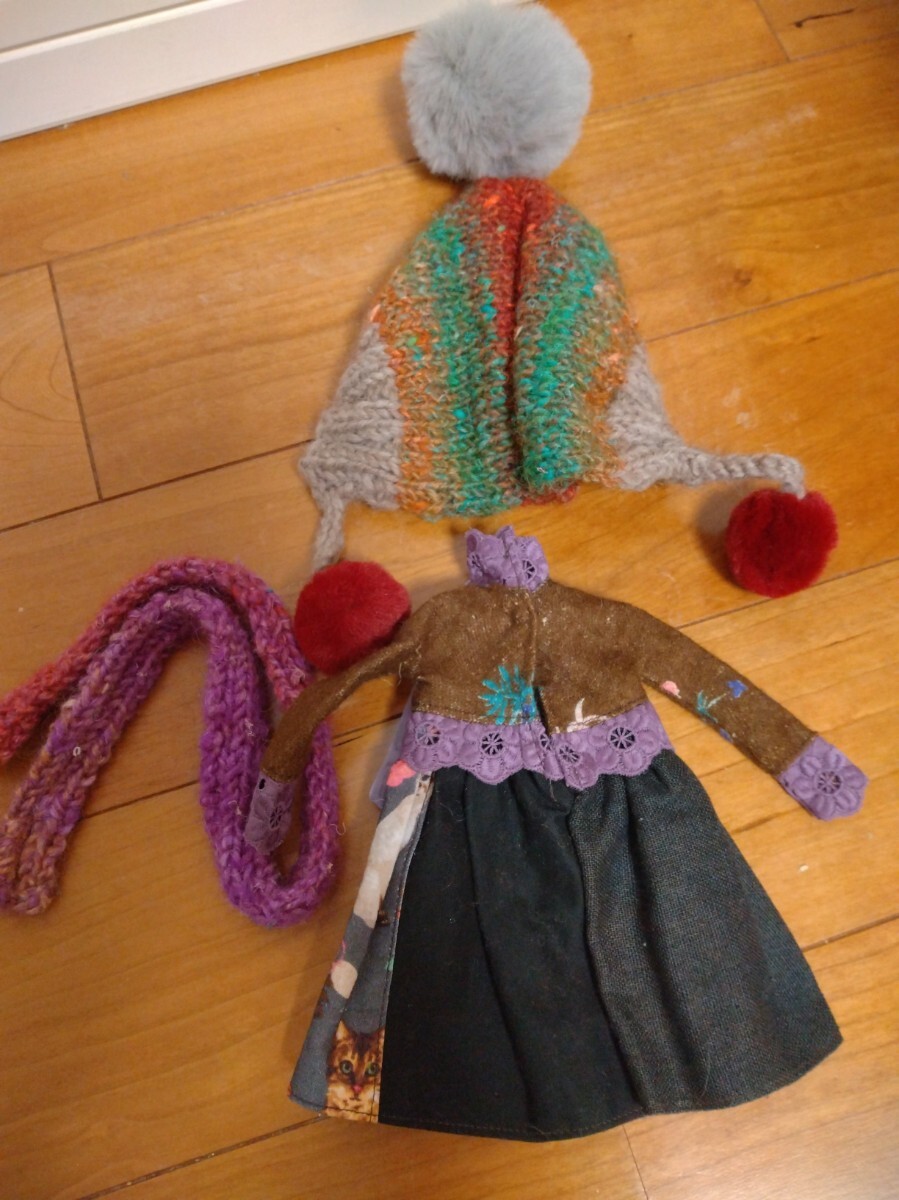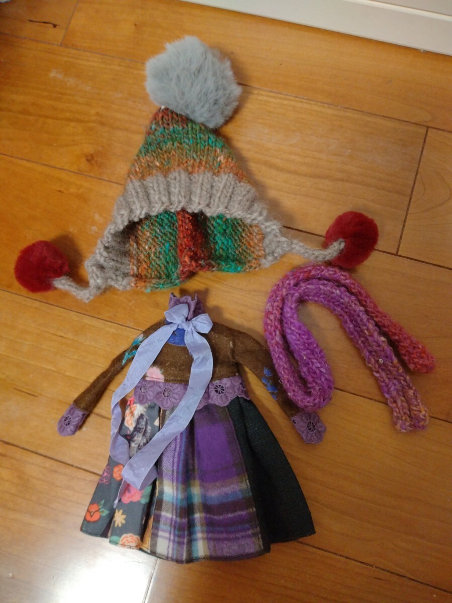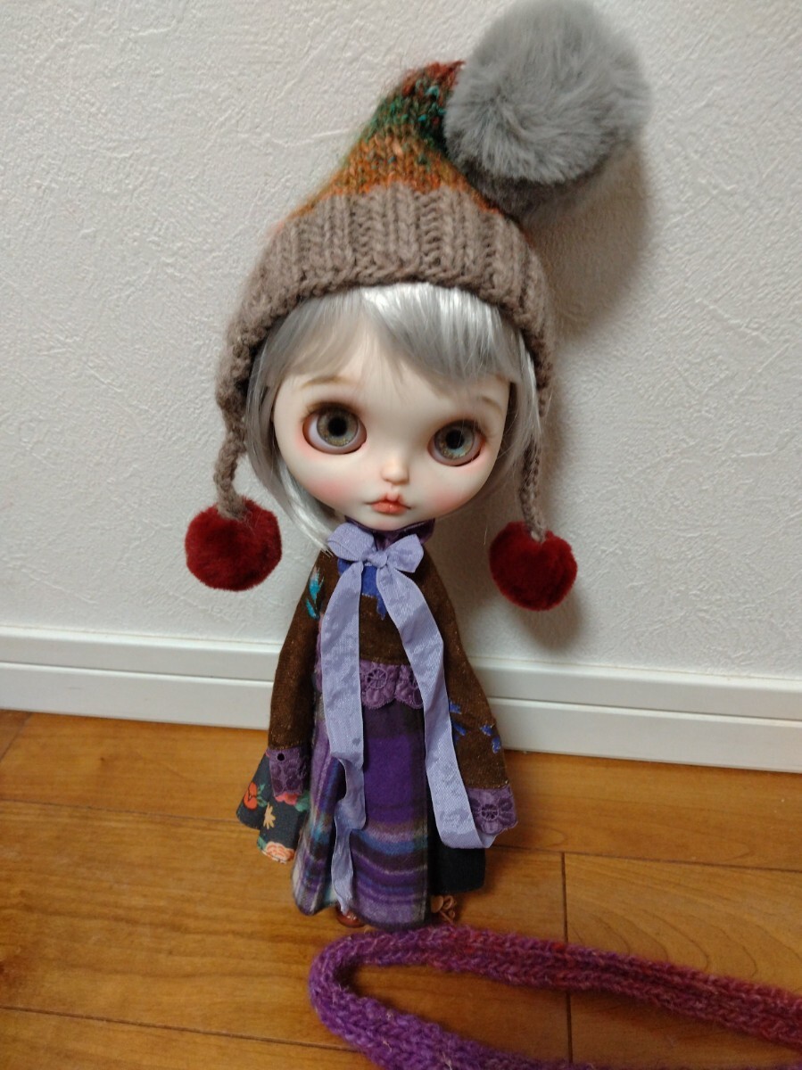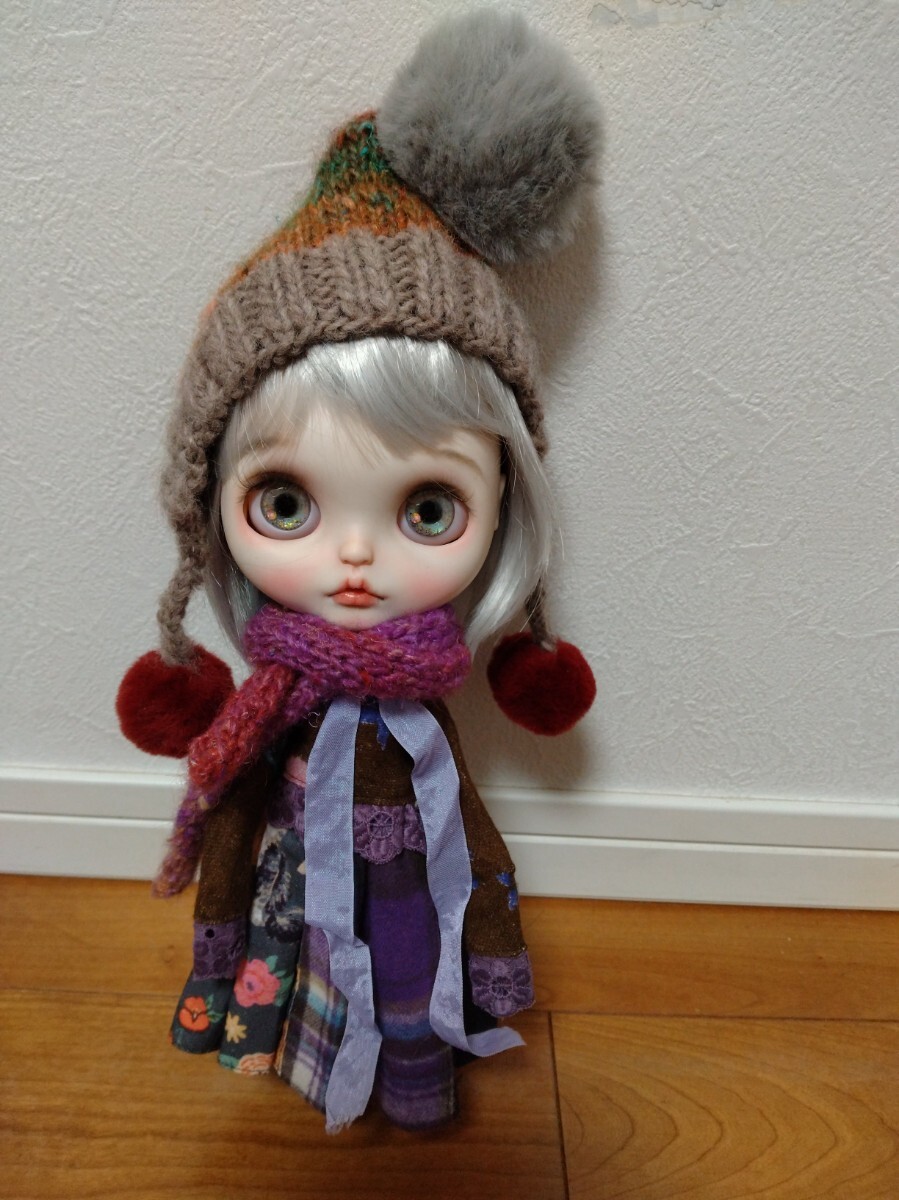 ネオブライスサイズのぼんぼんニット帽、ワンピース、マフラーのセットです♪