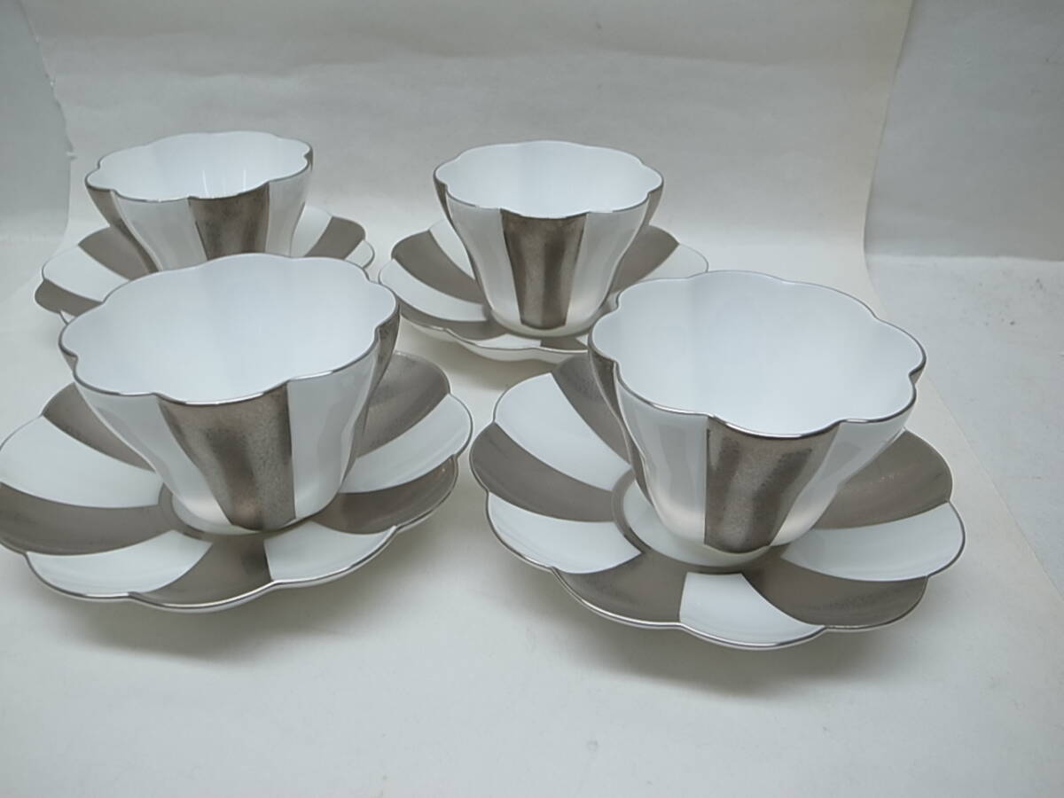 ☆NIKKOの金沢コレクション、シルバーの茶器セット4客です。ボーンチャイナかと思いますが、詳しくはわかりません。銀彩の状態も画像にてご判断ください。箱等ありません。未使用新品ではありまでんの御理解のうえお願いいたします。