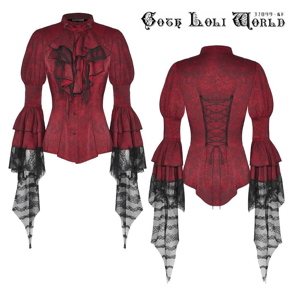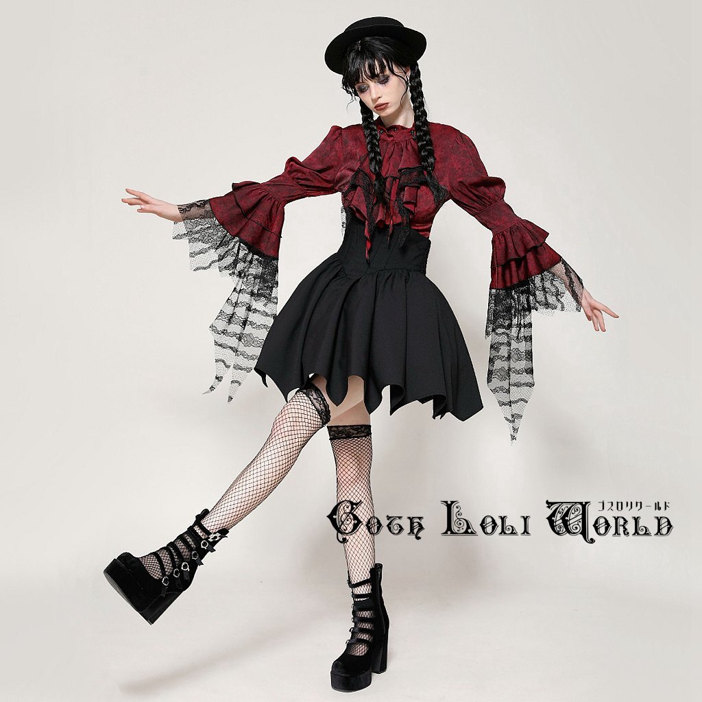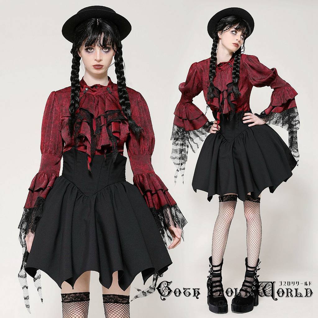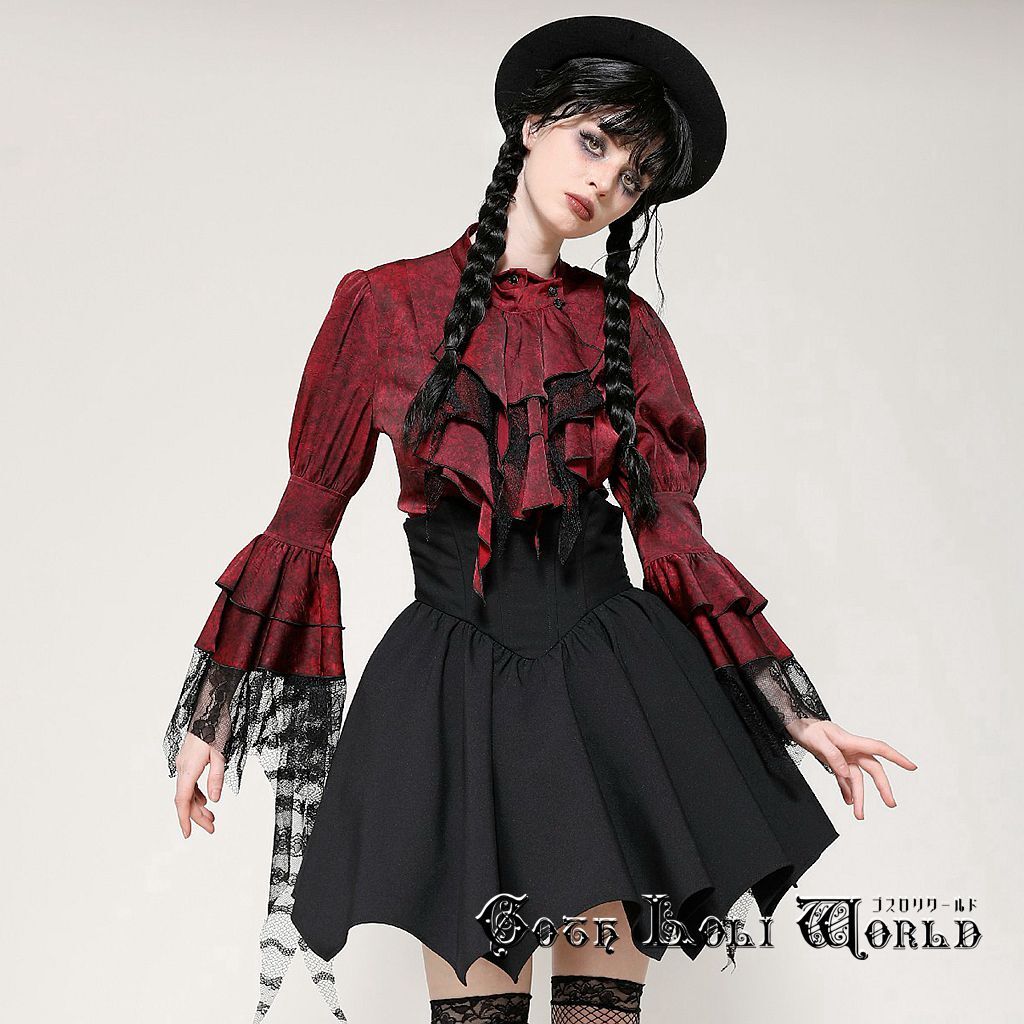 即納 IW119-XL ワインレッド ラッフルジャボ ブラウス ファッション ゴシック ゴスロリ ビジュアル系 ヴィジュアル系 V系 モード系 地雷系