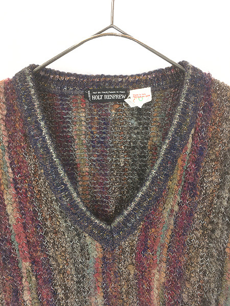 毛足の長いモヘア混ウールアクリル素材・Vネック。