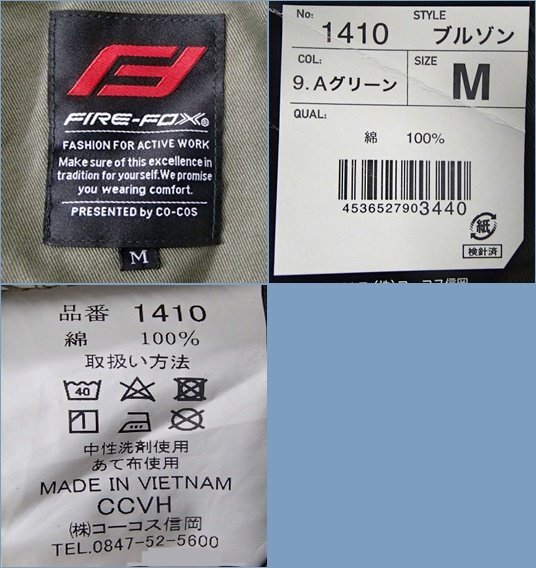 未使用 FIRE FOX ブルゾン No.1410 グリーン Mサイズ コーコス信岡 作業服 ワークウェア 作業着 アウトレット