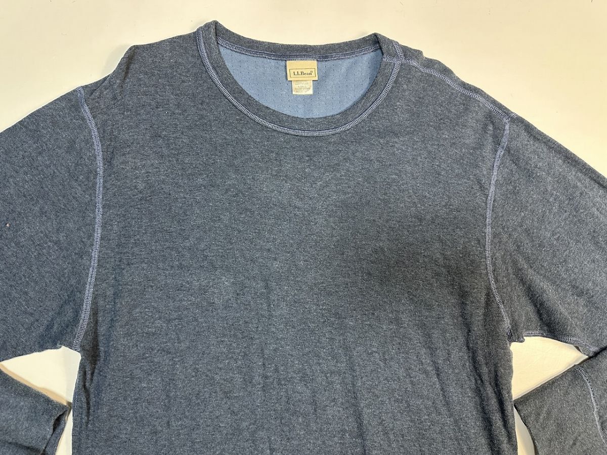 ●US USED L.L.Bean エルエルビーン カナダ製 90s 90年代 ヴィンテージ ニット ロンT コットンウール ネイビー紺【L】