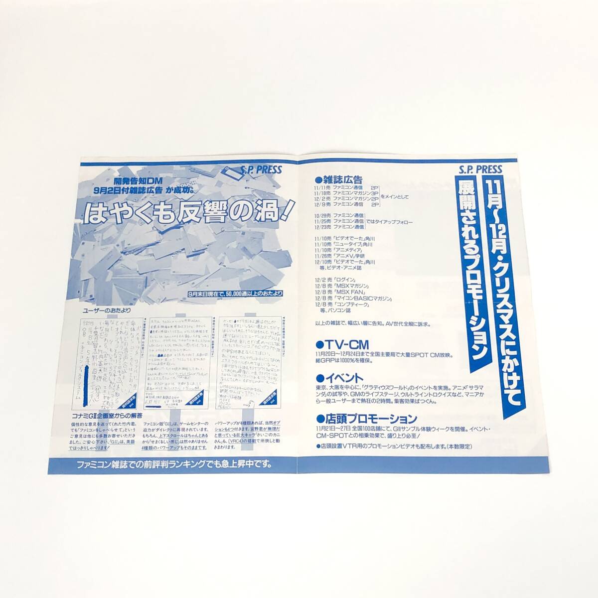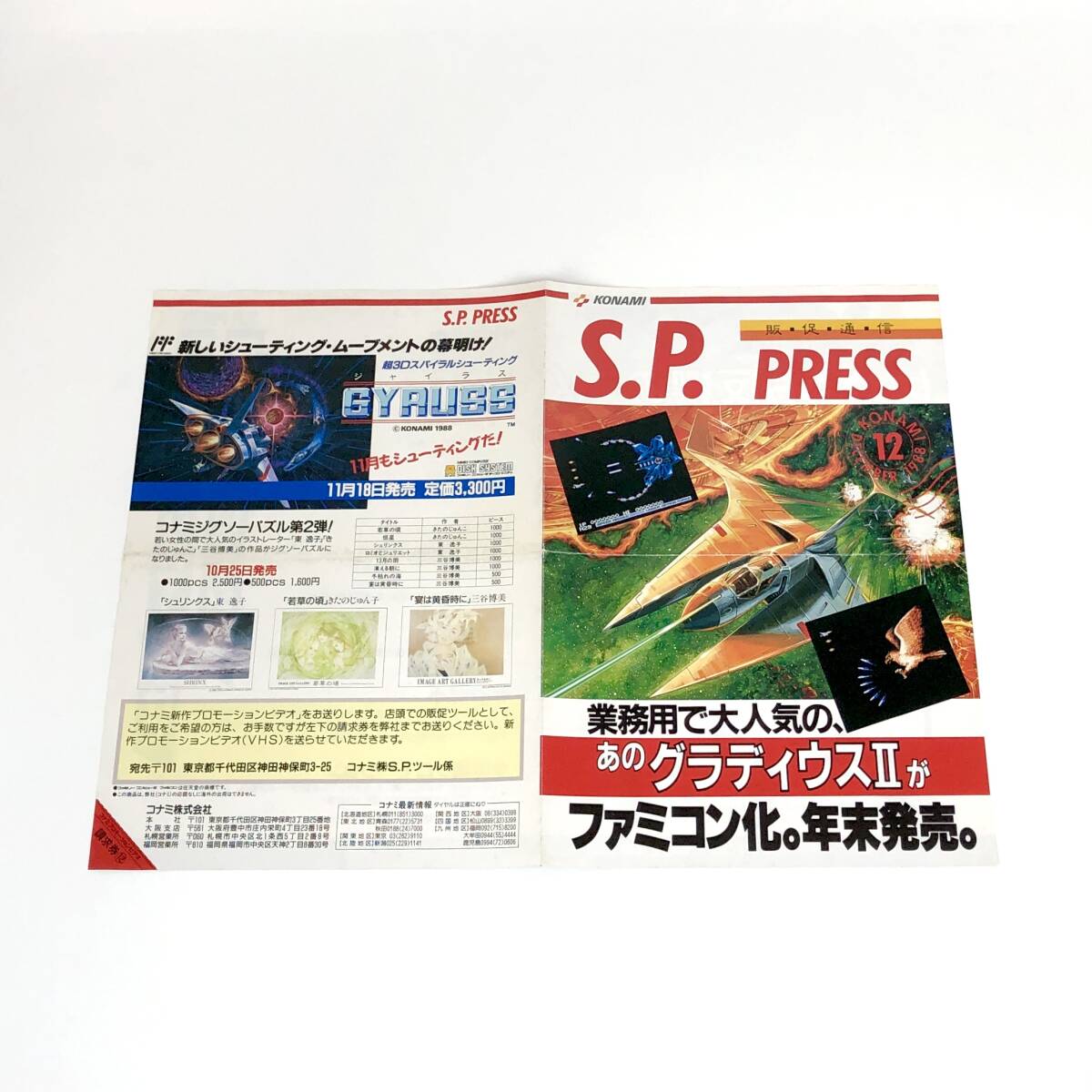 【送料無料】 コナミ 販促通信 S.P. PRESS ファミコン グラディウスⅡ 二つ折りタイプ A4サイズ チラシ 痛みあり コナミ 80年代 当時物