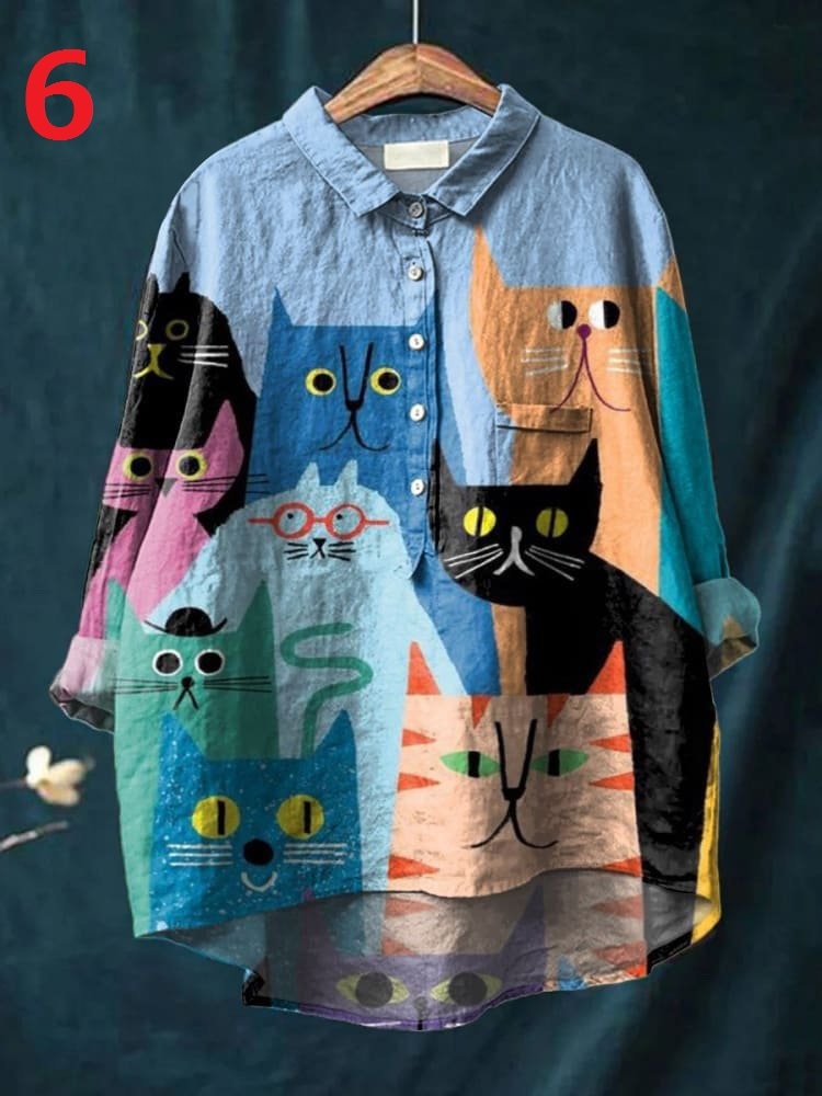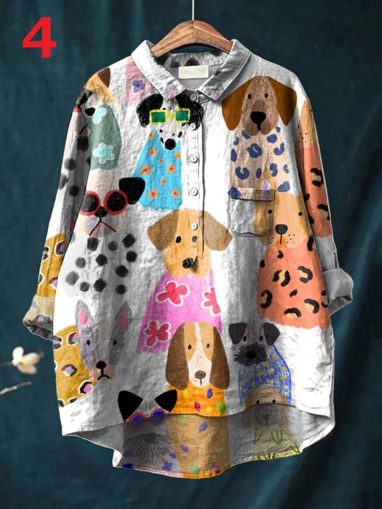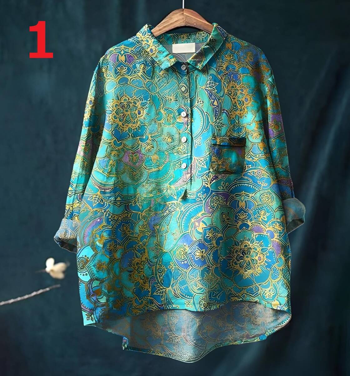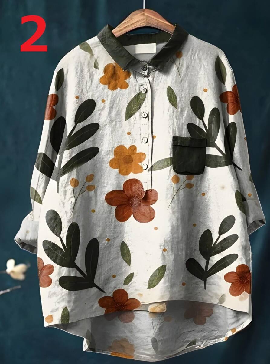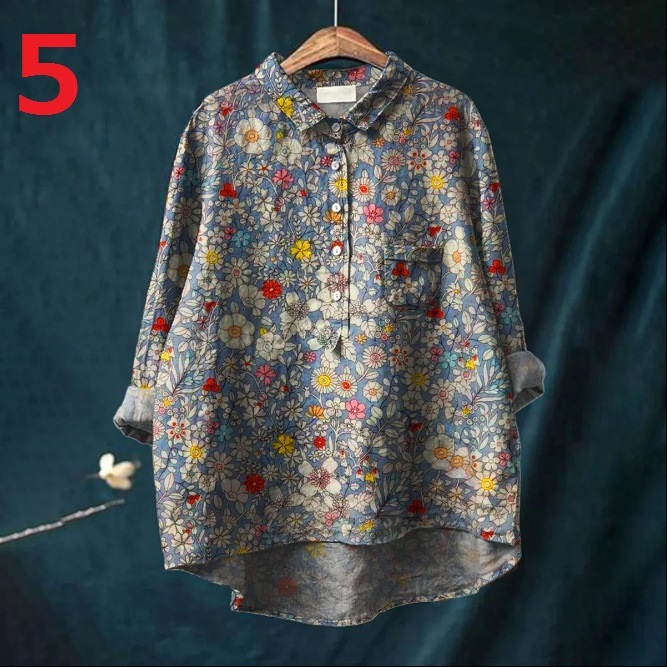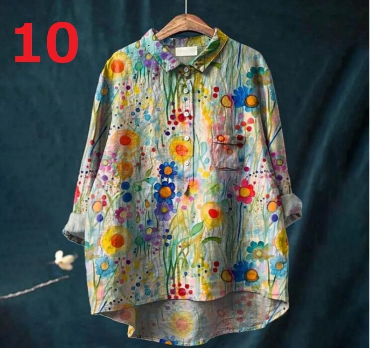 柄選択可シャツ ブラウス 着痩せ チュニックシャツ 綿麻 プリント柄 トップス レディース 長袖 体型カバー チュニック