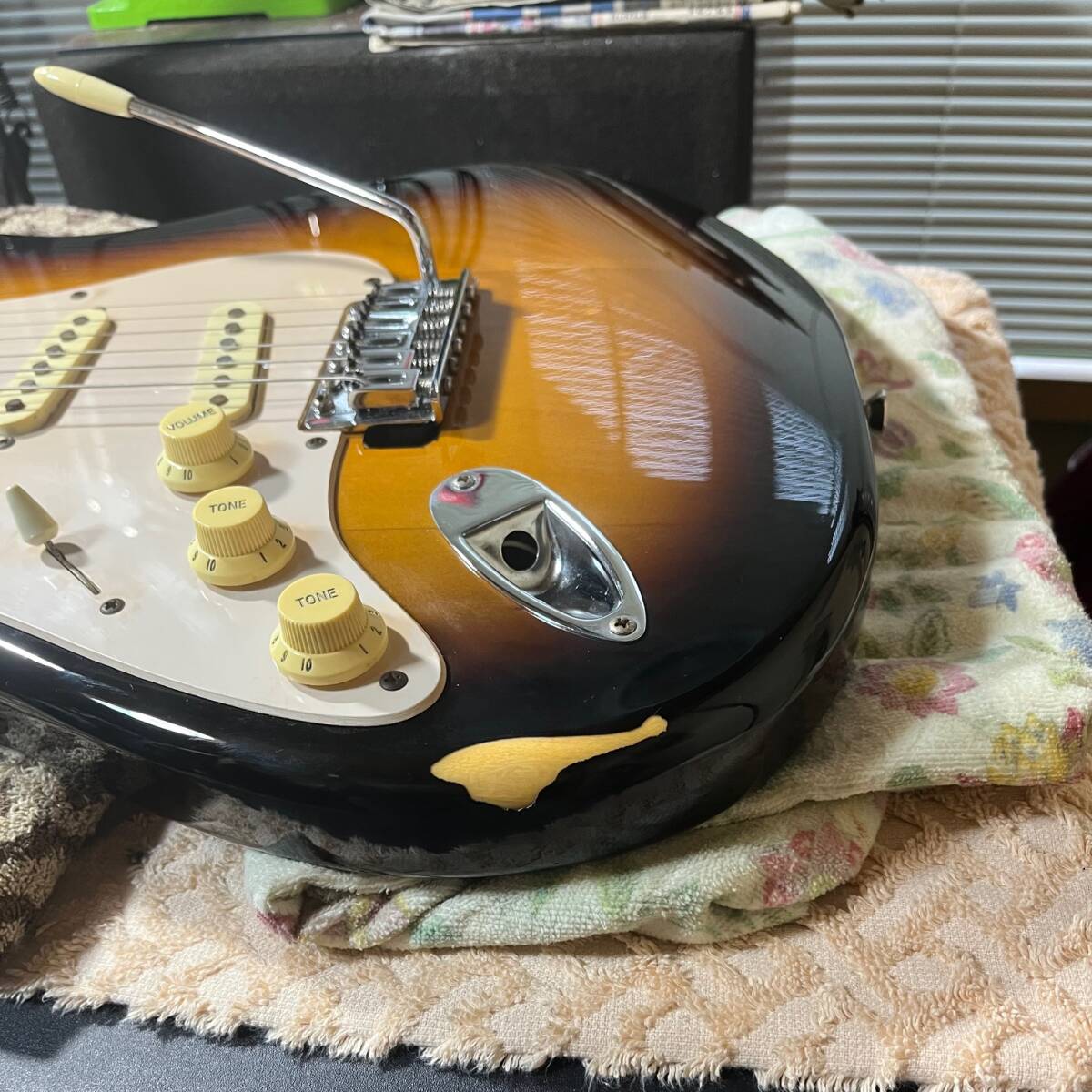 トレモロユニットは右用に交換(ボディー削って取り付け)