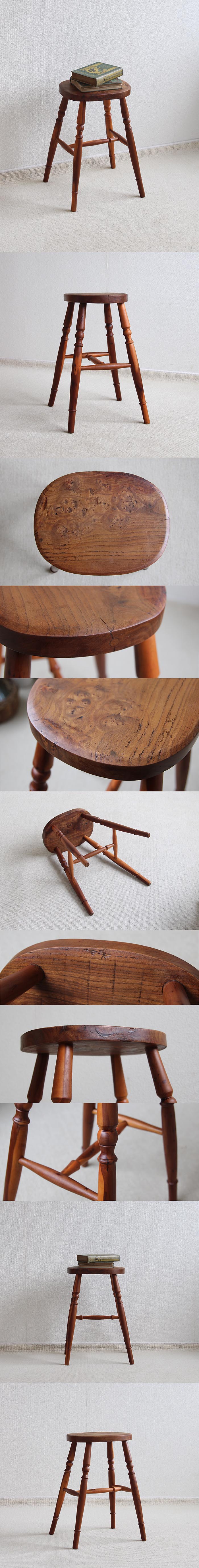 ●イギリス アンティーク調 ウッドスツール 一枚板座面 インテリア 店舗什器 ディスプレイ ビンテージ 家具 K-857