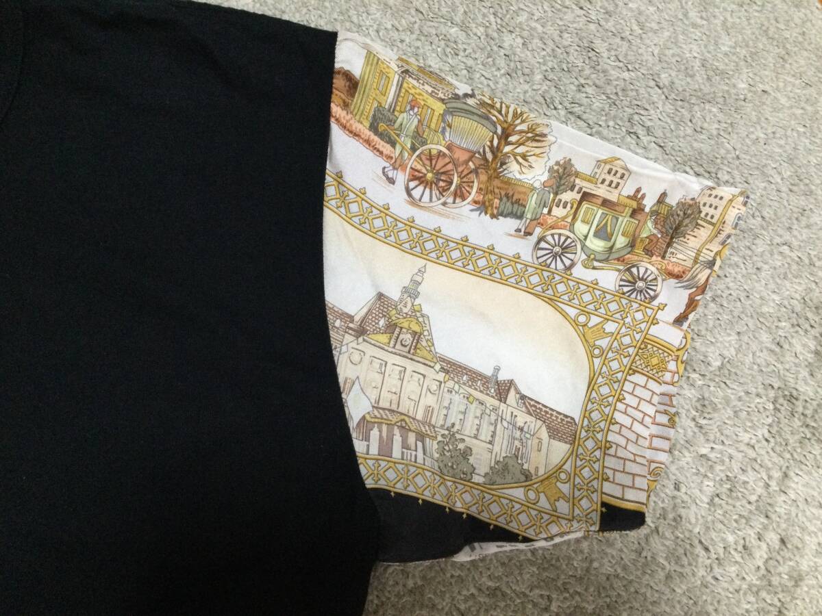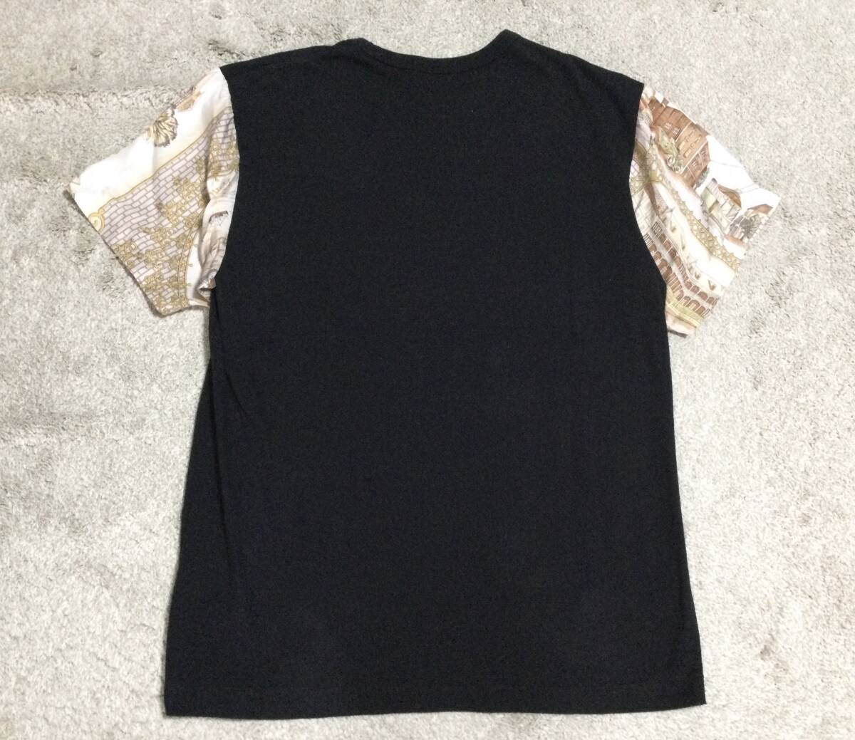 こちらは、大人気♪ブラックコムデギャルソンの半袖Tシャツです。サイズ表記M。2013年モデル。袖にヴィンテージスカーフを使用した切替デザイン。