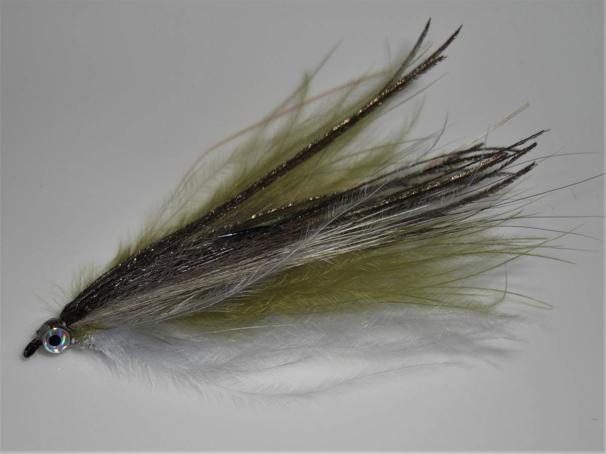 内部のマラブーが水中でゆらゆらと動き、よりトラウトの好奇心を誘う仕上がりになっています。トゲウオ類を意識した色合い仕上げていますが、ワカサギや多くの小魚にも対応できます。多くの本流や湖で活躍することと思います。