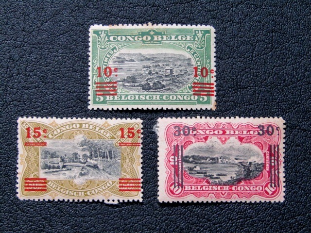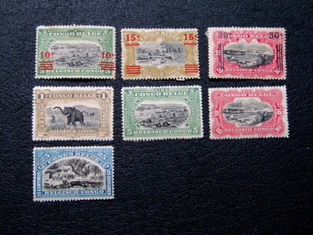 【m19】☆外国切手 1908年ベルギー領コンゴ 植民地時代 加刷 計7枚 未使用☆