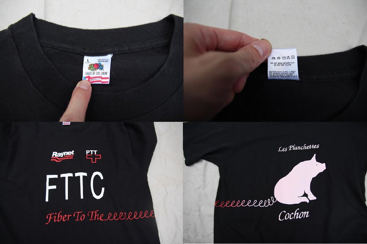 80s 90s VINTAGE ヴィンテージ USED 古着 Fruits Of The Loom フルーツオブザルーム S/S Print Tee プリントT Pig 豚 USA BLK 黒 L 企業系